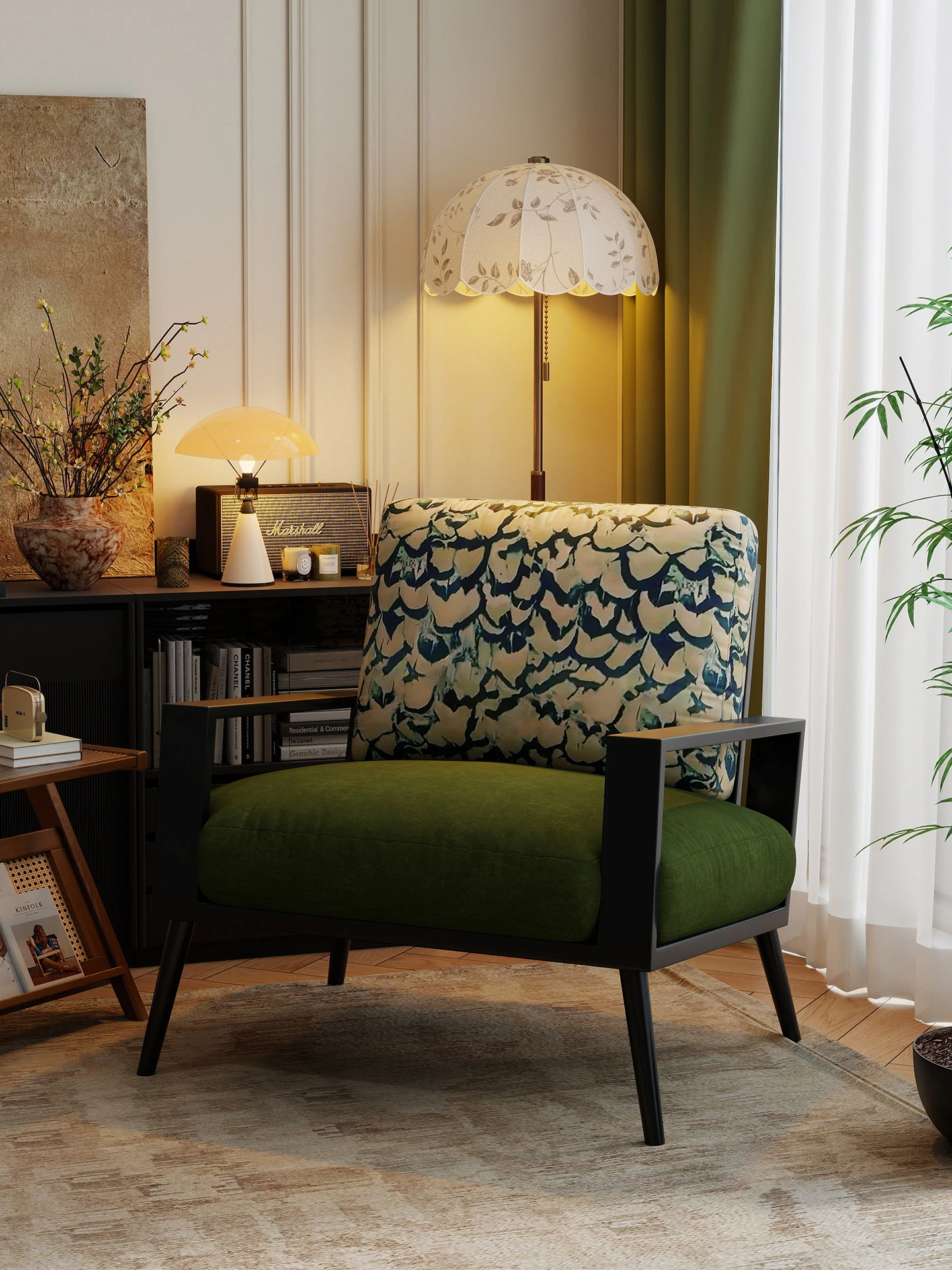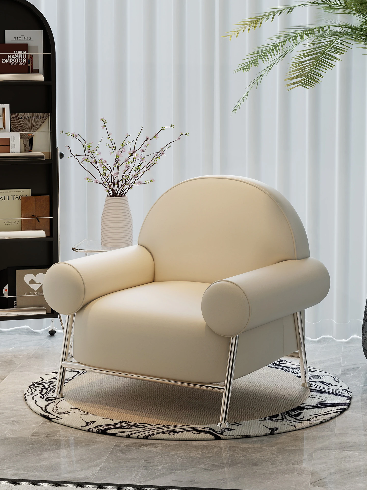 レトロな一人用ソファチェア「バーク」- リラックスできるデザイン、バルコニーやリビング、寝室にぴったり。シンプルでスタイリッシュなミニソファで、家の中に特別な空間を演出します。