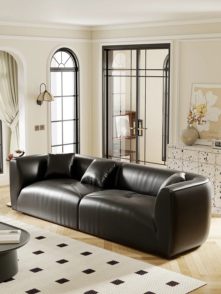現代的ミニマリストデザイン!ブラックレザーの一人掛けソファチェア。イタリアンスタイルのシンプルなホテル用リビングルームのリラックスチェア。牛革使用で高級感溢れる一品!