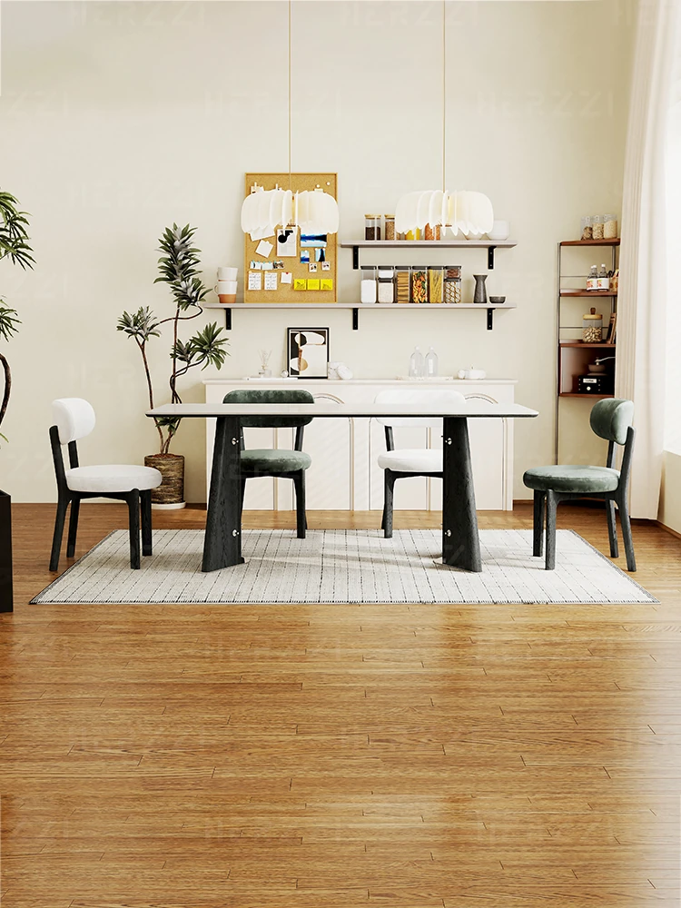 香港送料無料!光沢のある岩板を使用した、軽やかなラグジュアリー感のある小型ダイニングテーブル。侘び寂びの風合いを持つ長方形デザインで、ミニマルなスタイルを演出。おしゃれで機能的な食卓をお楽しみください!
