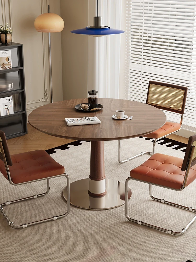 2025年新作!アンティーク風の天然木製小型サークルテーブル。コンパクトな住宅に最適なウォールナットのダイニングテーブル。おしゃれで使い勝手抜群の円形テーブルで、楽しいひとときを演出します!