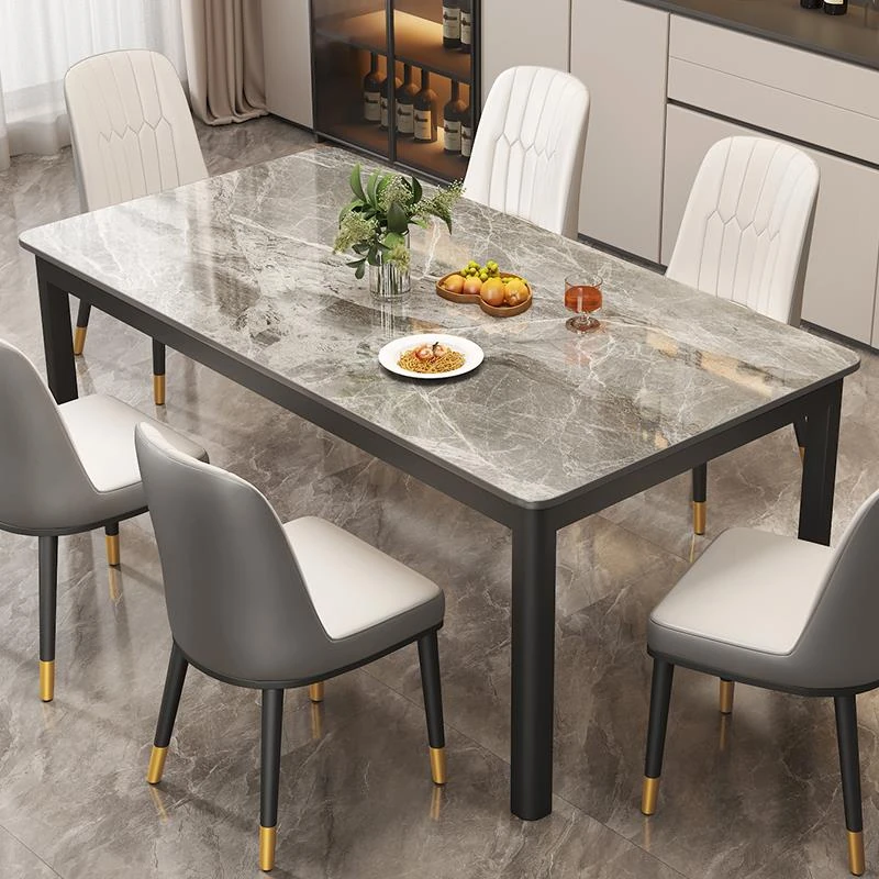 洗練されたミニマリズムと高級感を兼ね備えた中古風の長方形ロックプレートダイニングテーブル。小さなリビングにもぴったりなスタイリッシュな食卓で、毎日の食事を特別なひとときに変えます。