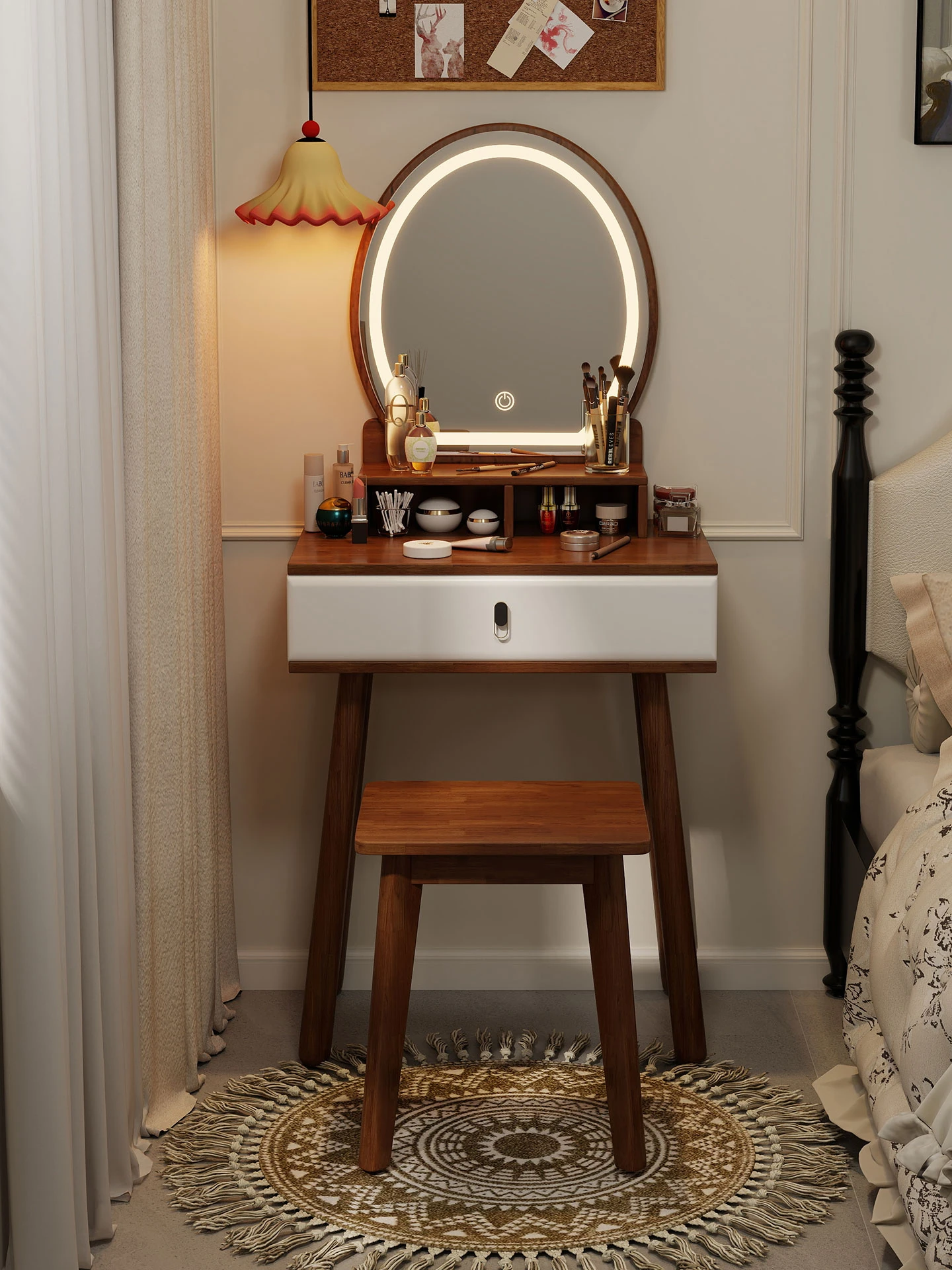 2025年新作!実木製の小型化粧台、女性のための寝室にぴったり。統合ミラー付きで、レトロな雰囲気を演出。おしゃれで機能的なデザインで、毎日のメイクを楽しくサポートします!