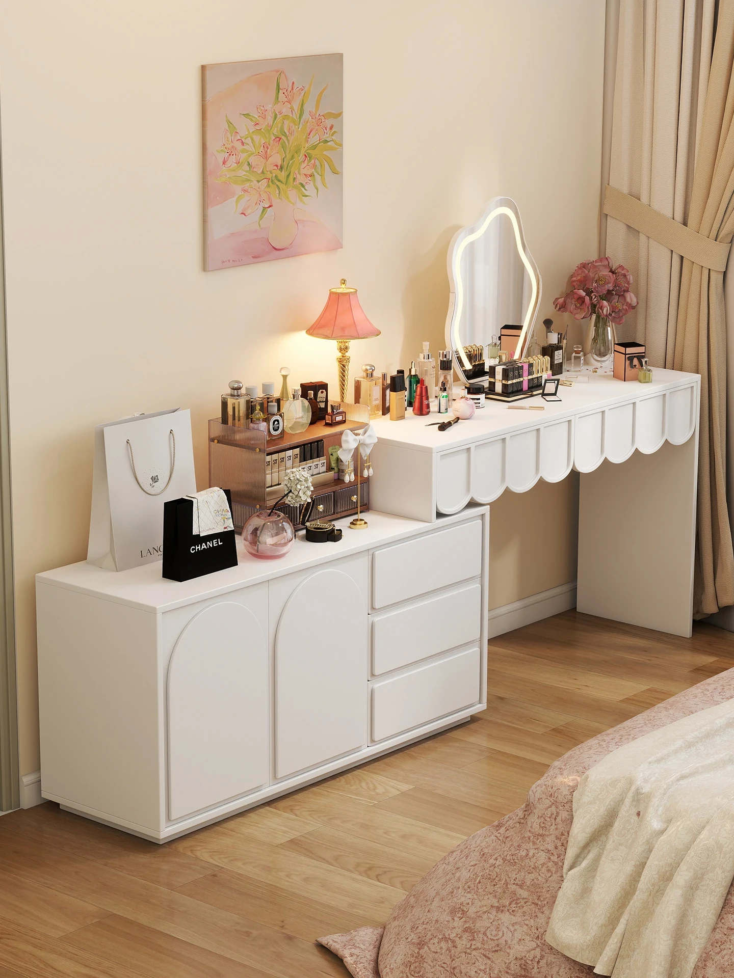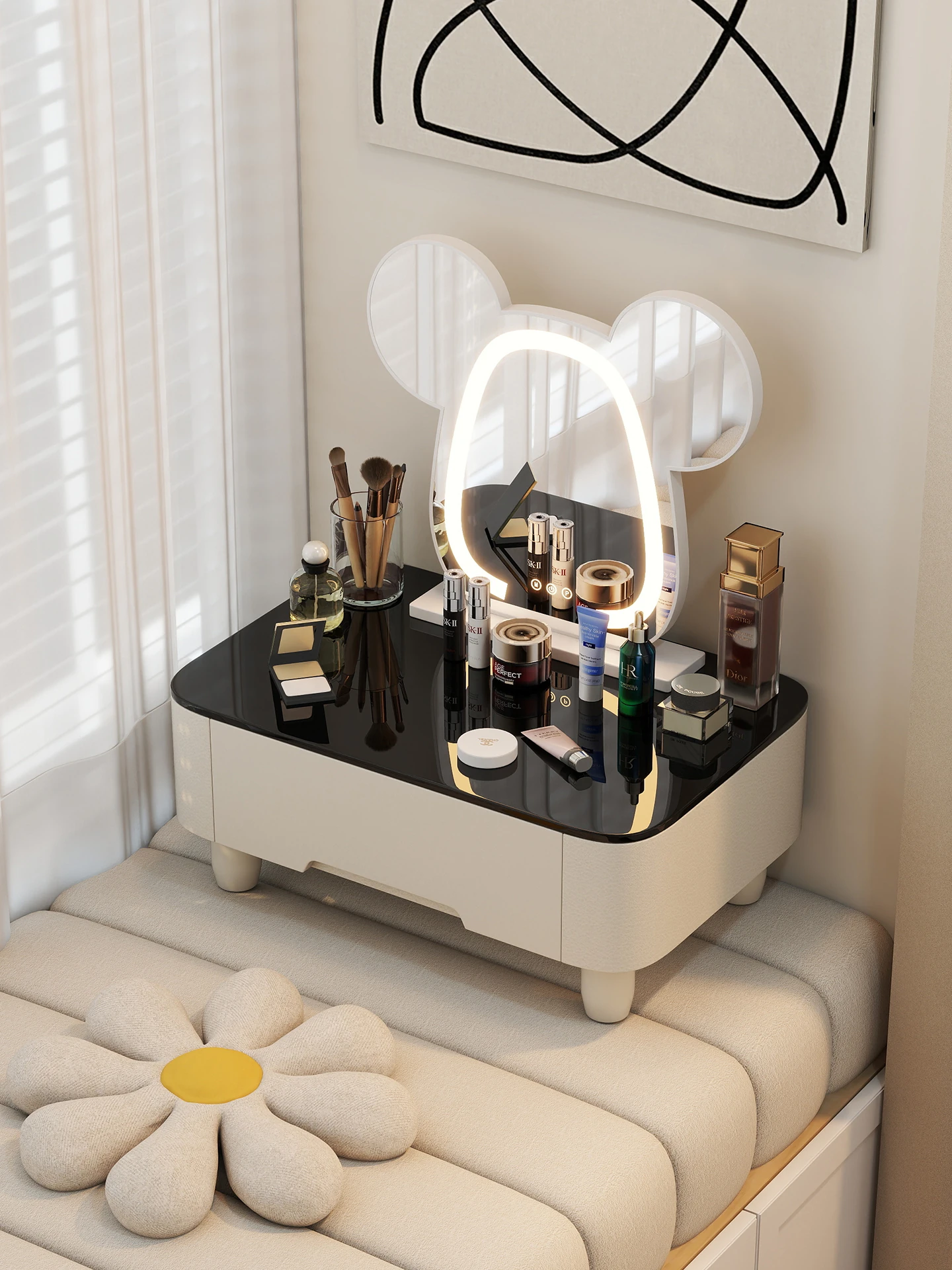 モダンシンプルな窓辺のドレッサー収納キャビネット|コンパクトな小型メイクテーブル|タタミルームにも最適な多機能デザイン!あなたの美しさを引き立てる完璧なアイテム!
