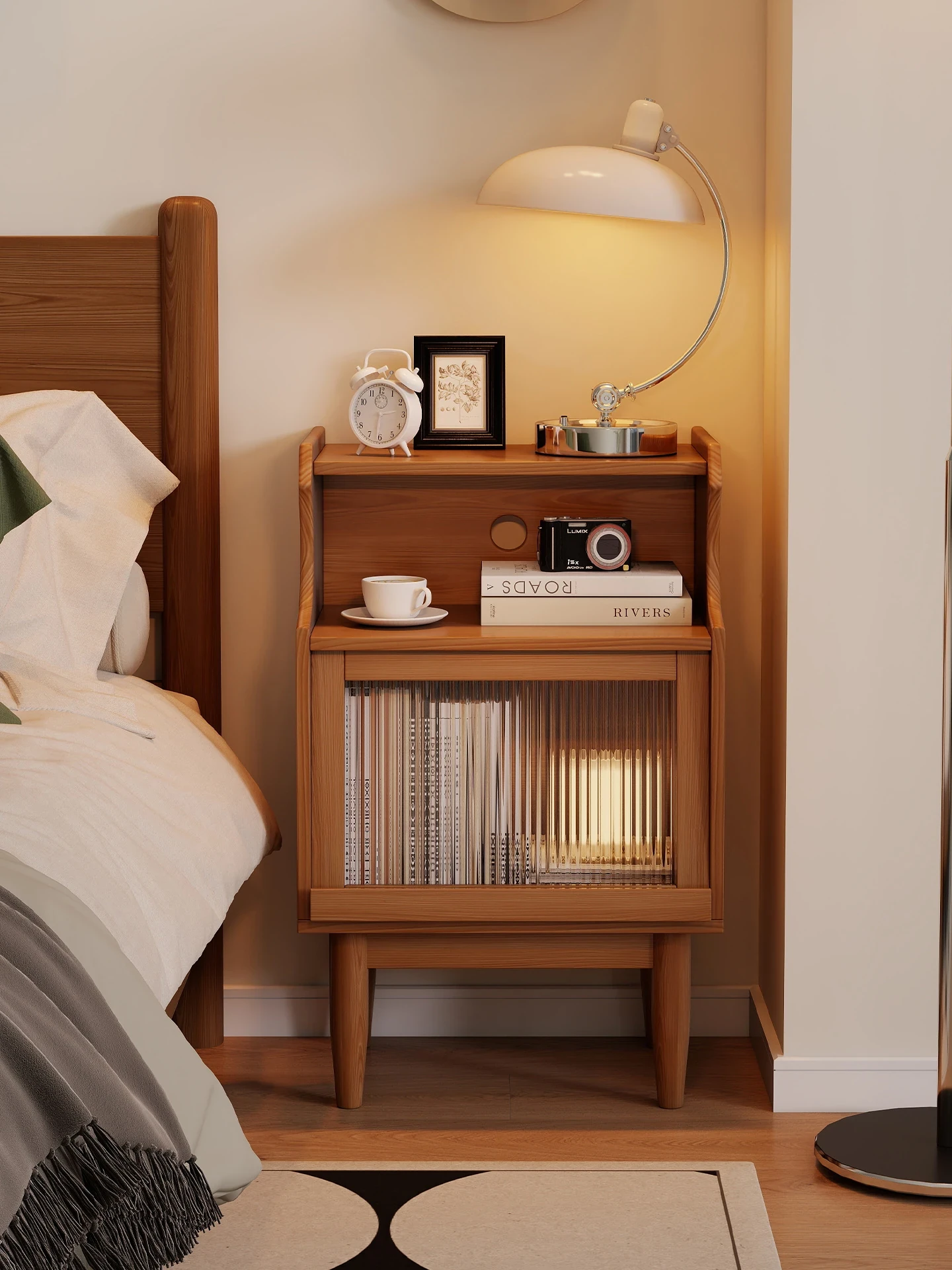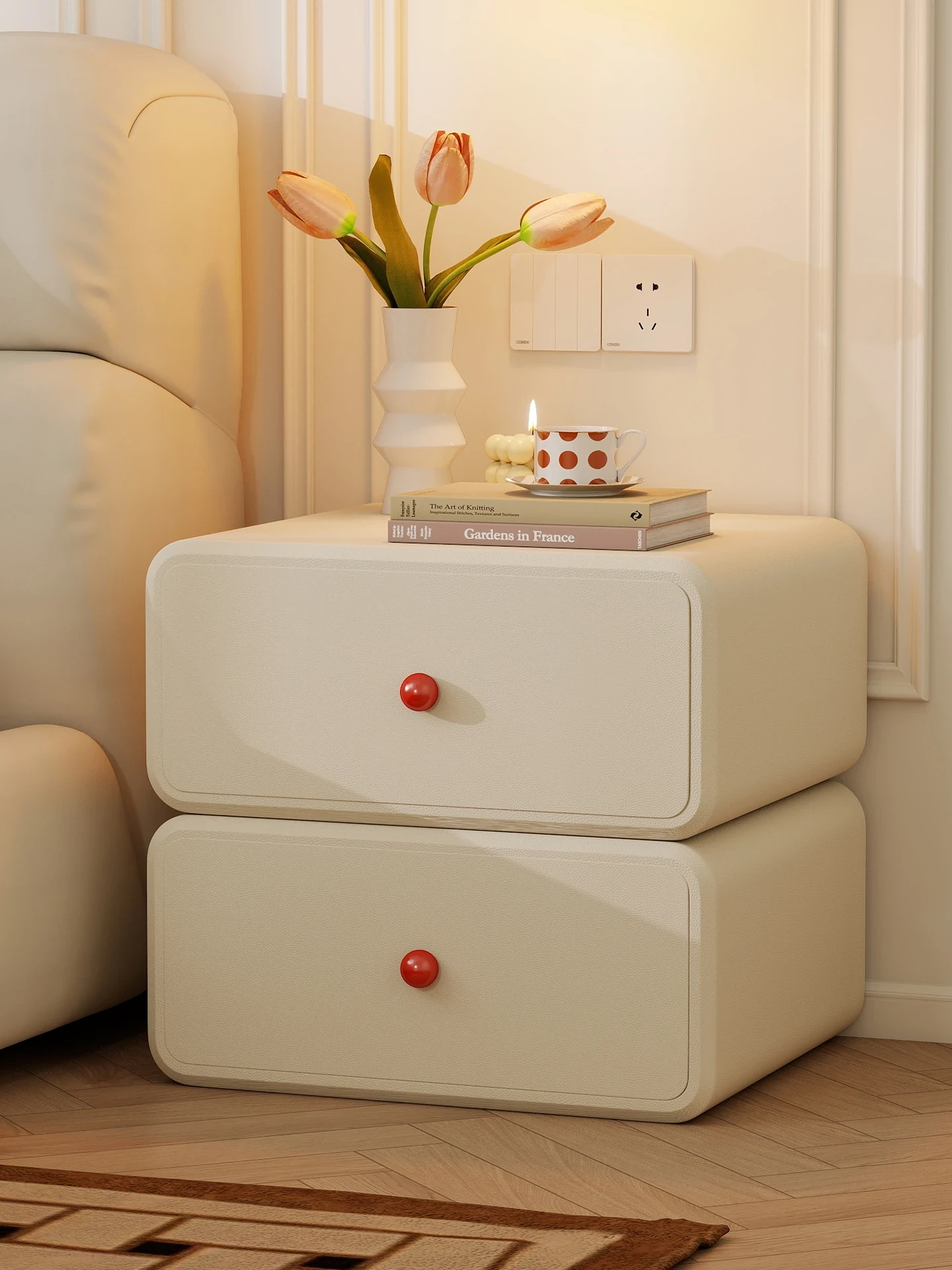 クリーム風の無垢材ベッドサイドキャビネット - 2025年新作、シンプルでモダンな高級クリエイティブデザイン、寝室にぴったりな収納スペースを提供します!