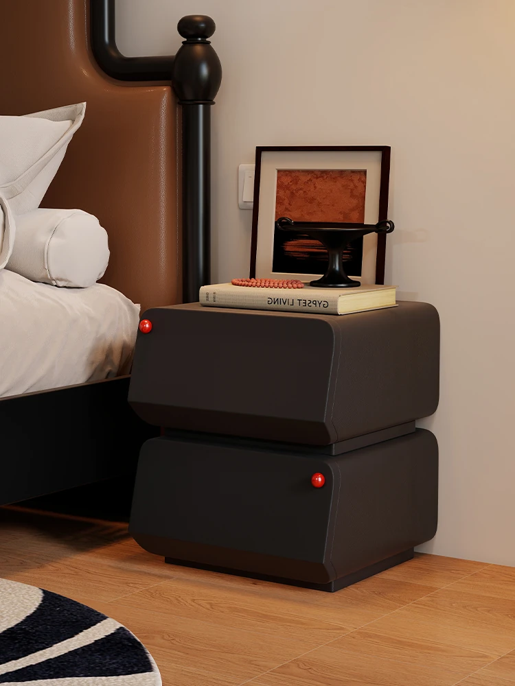 レトロな黒色の無垢材で作られたクリエイティブなナイトスタンド。ユニークな形状で、寝室にぴったりの収納力を持つこのフロアキャビネットは、面倒な取り付けも不要です。あなたのインテリアを一層引き立てるアイテムです!