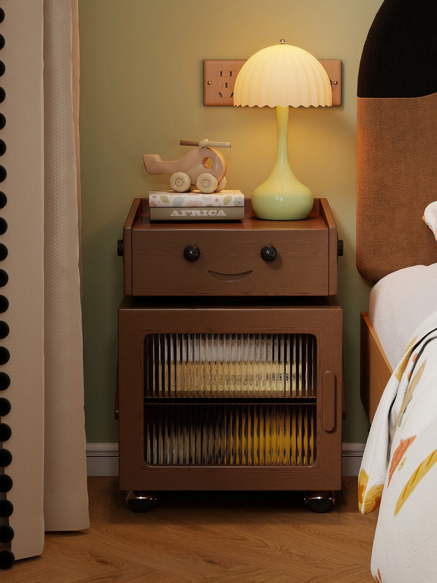 高級感あふれる実木製パスワードロック付きベッドサイドキャビネット2025年新作!スタイリッシュな寝室収納に最適なアイテムで、あなたの生活空間をグレードアップします。
