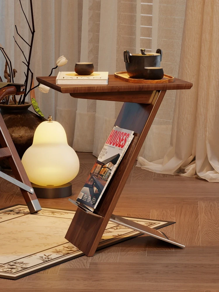 中古風の無垢材ティーテーブル - モダンでシンプルなデザイン、小型住居に最適!岩板収納付き、リビングをおしゃれに演出するヴィンテージスタイルのティーテーブル。