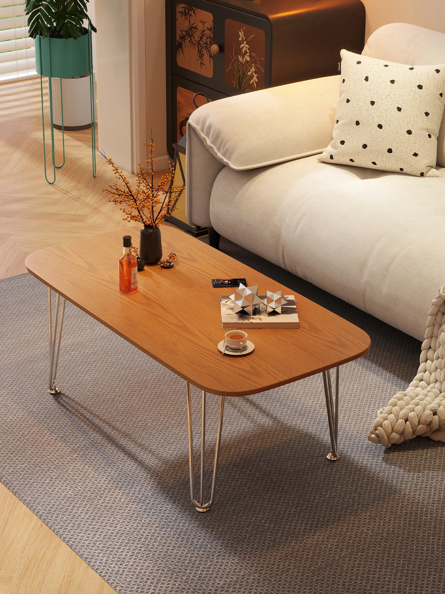 軽やかで高級感のあるアクリル製コーヒーテーブル!モダンなデザインの小型リビングに最適な新作異形木製テーブル。クリーミーな雰囲気で、おしゃれな空間を演出します。