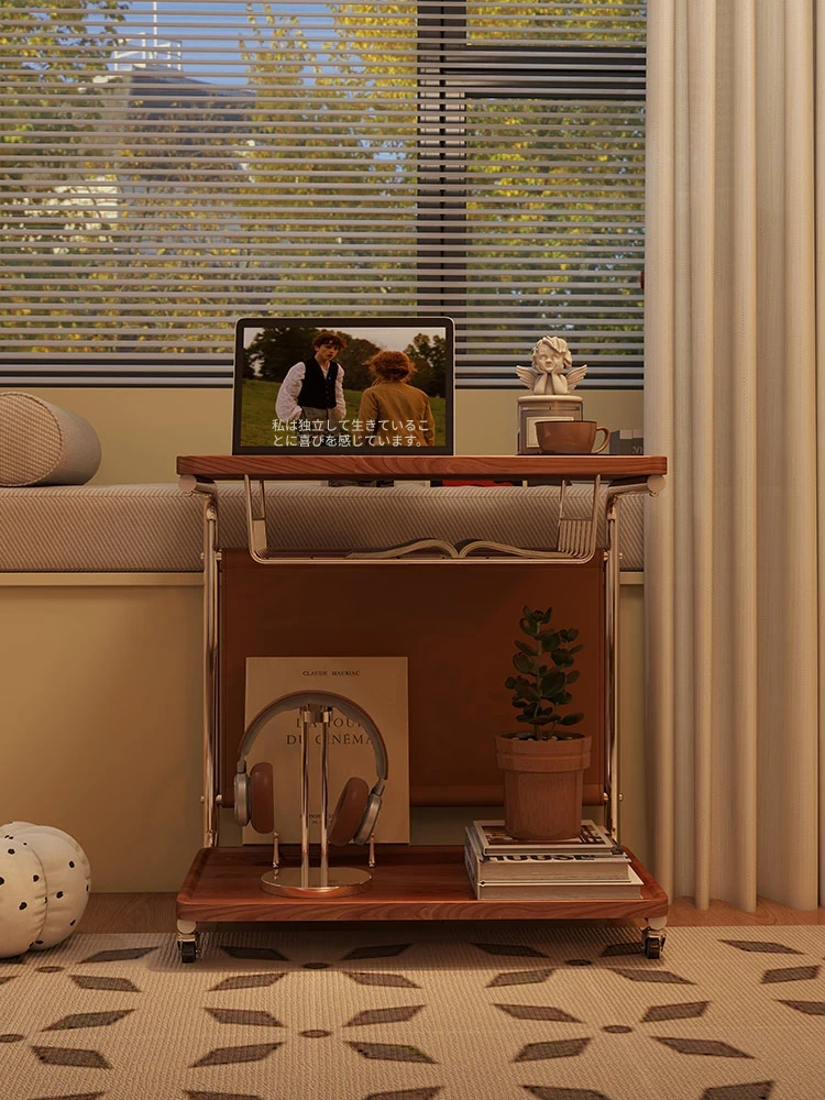 キャスター付きの実木製小型サイドテーブル - リビングに最適な収納力抜群のティーカート!おしゃれなデザインで、お茶やスナックを手軽に運べる便利アイテム。お部屋をスッキリ整える、あなたの新しい相棒です!