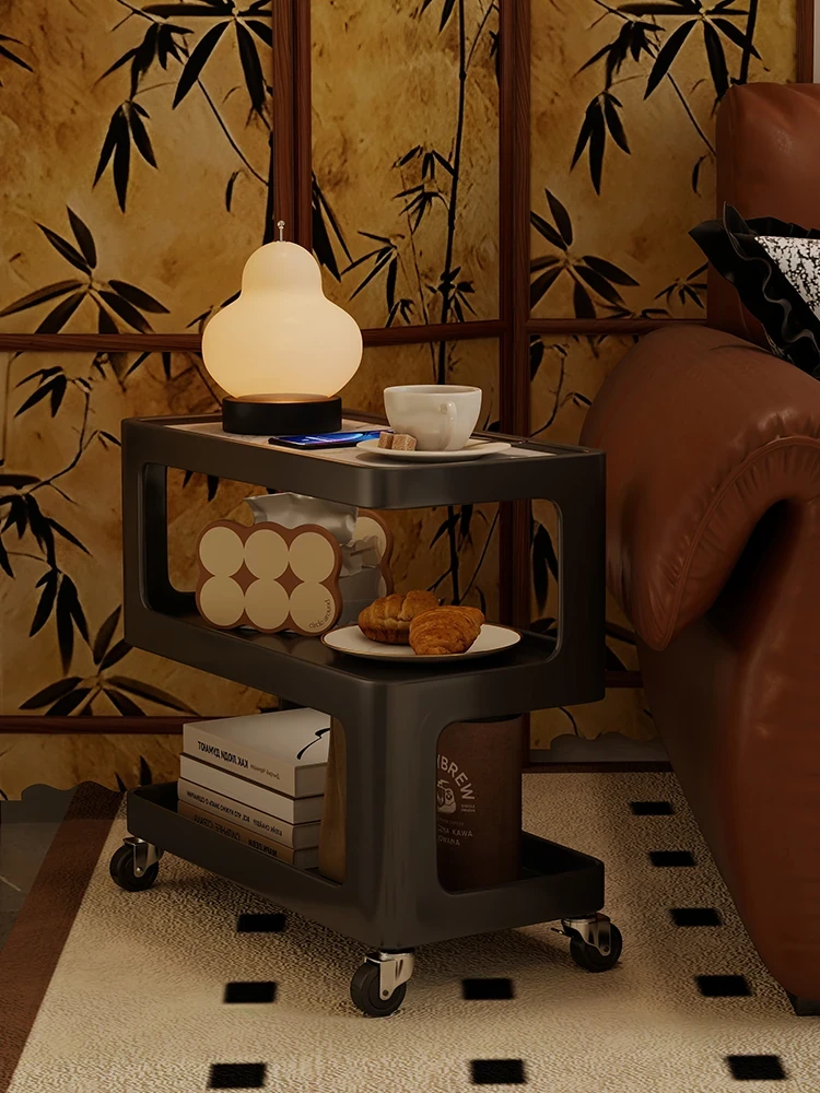 移動式スナックカート!多層収納のティーテーブル - 家庭用リビングに最適なソファサイドテーブル、果物収納にもバッチリ!シンプルでおしゃれなデザインで、使い勝手抜群!