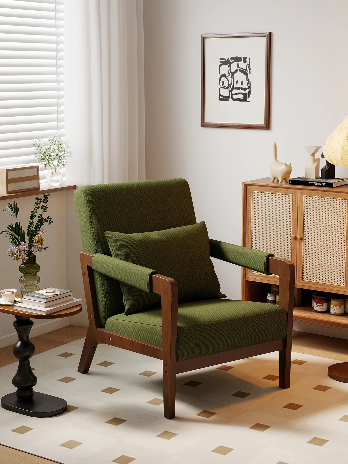 Vintage Solid Wood Single Sofa Chair – Perfect for Living Rooms, Balconies, and Cozy Spaces – Ideal for Relaxation in Guesthouses or Reading Nooks