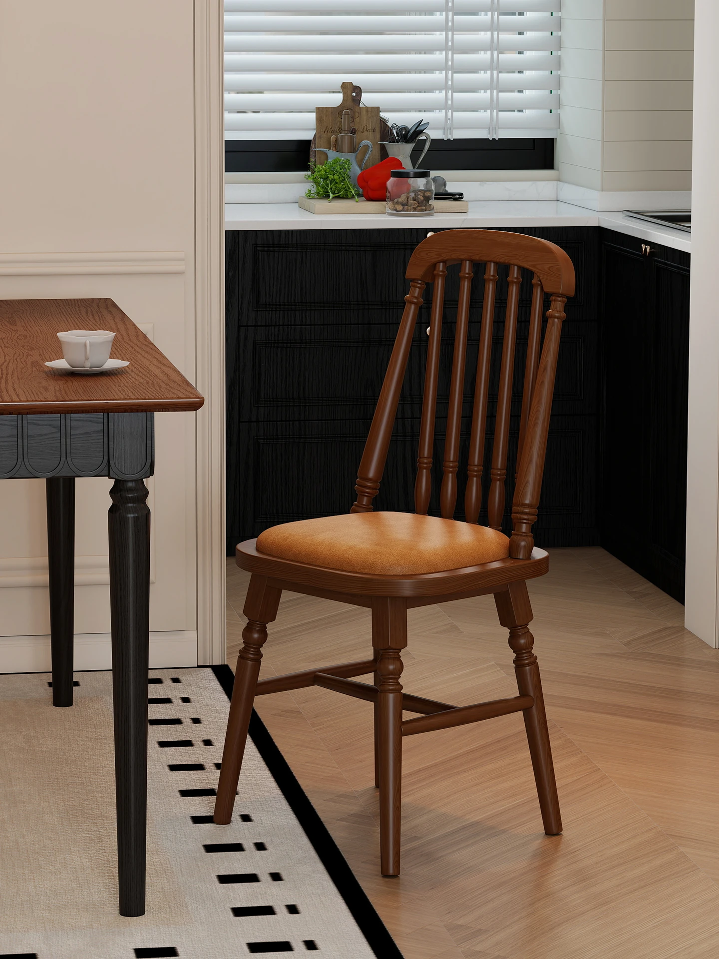 Vintage Solid Wood Dining Chair with Simple Backrest - Perfect for Small Spaces, Home Dining Rooms, and Retro Decor. Ideal for Conversations and Gatherings.