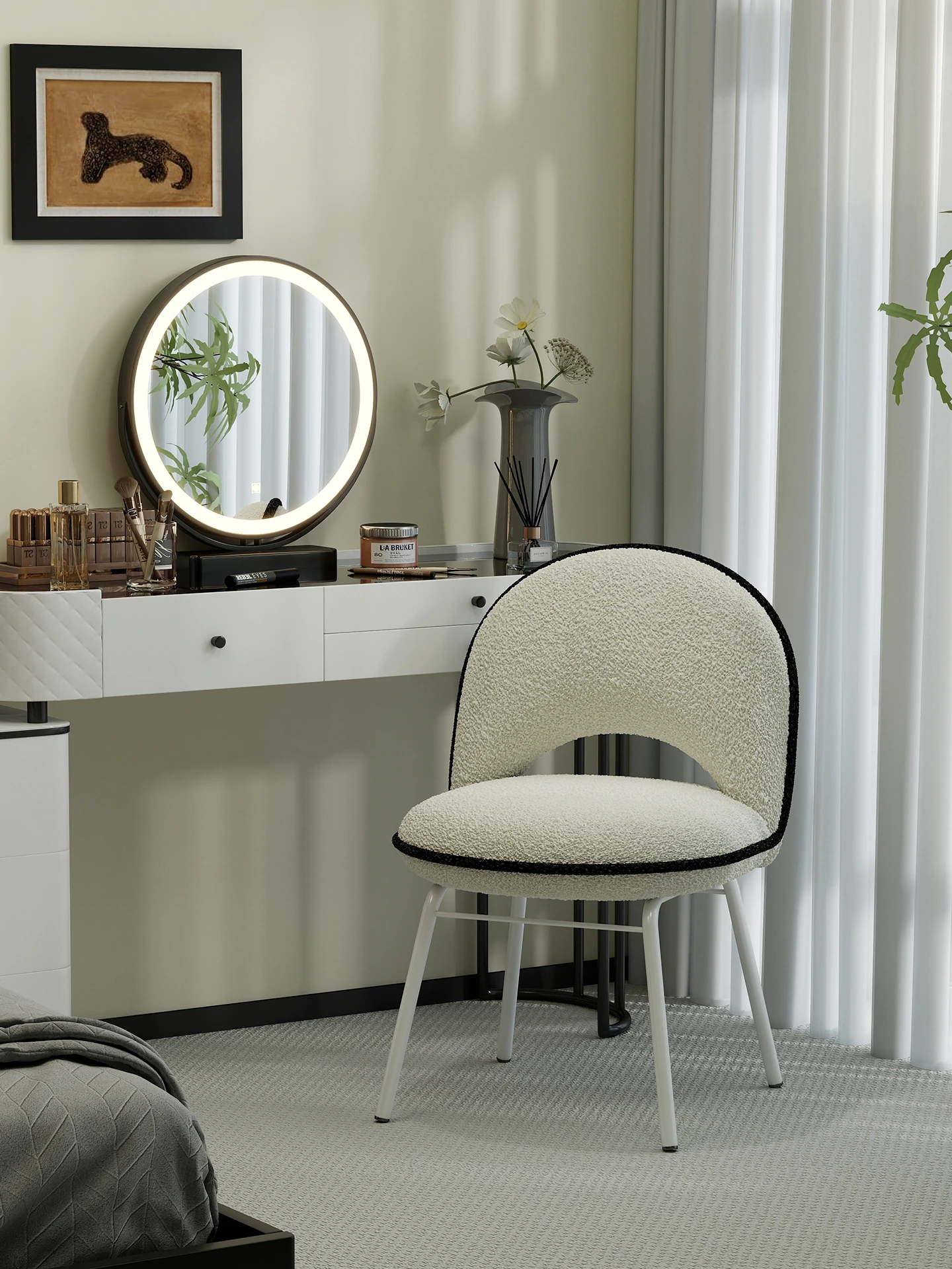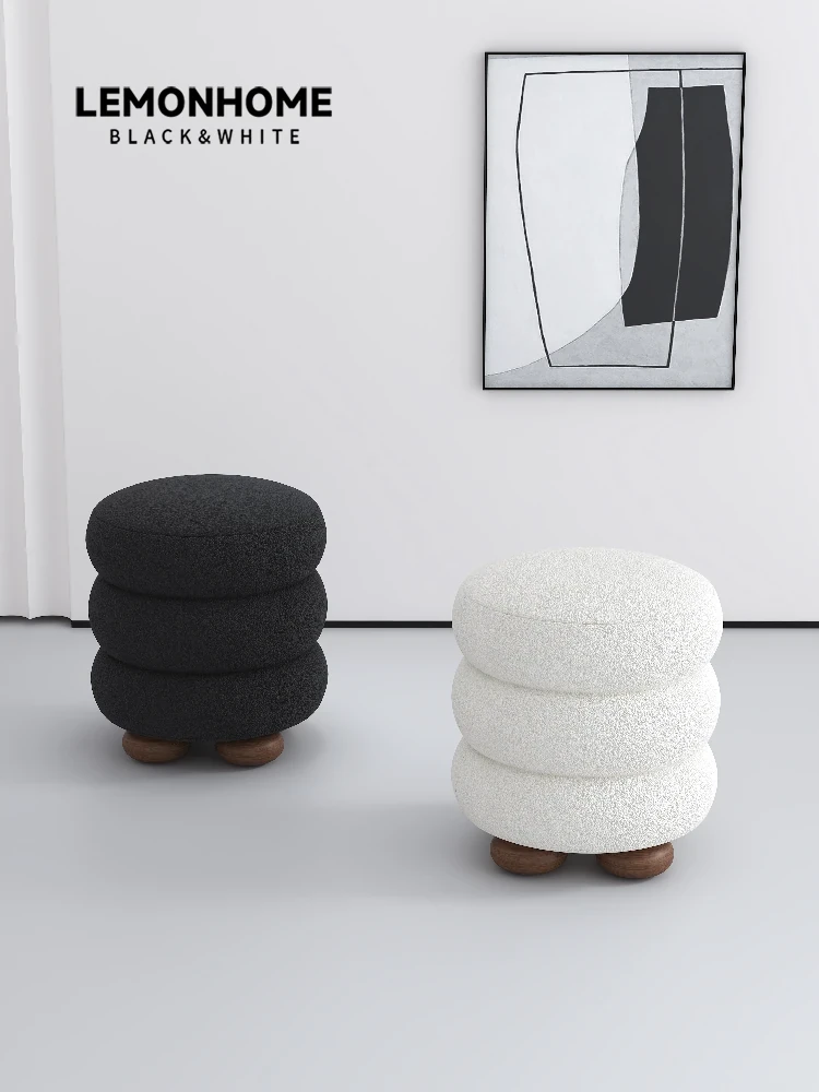 Minimalist Makeup Stool - Luxurious Lambswool Chair, Trendy Designer Style, Italian Minimalism for Your Bedroom Vanity, Round Seat for Ultimate Comfort and Style
