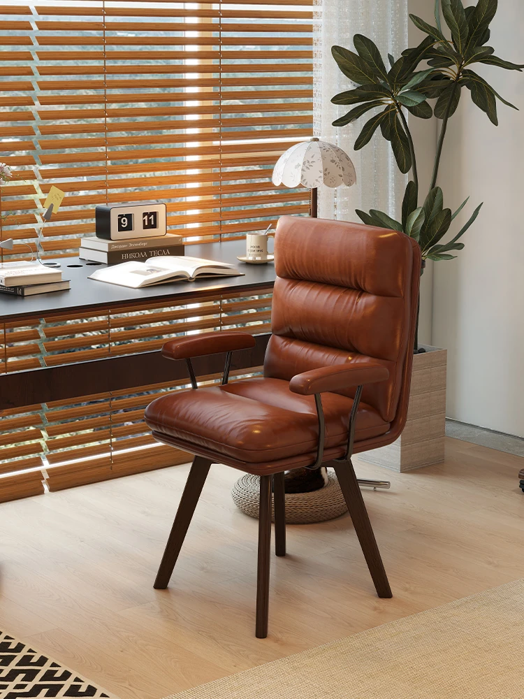 Vintage Style Adjustable Swivel Makeup Chair with Oil Wax Leather - Elegant High-End Desk Chair for Girls' Bedroom Vanity