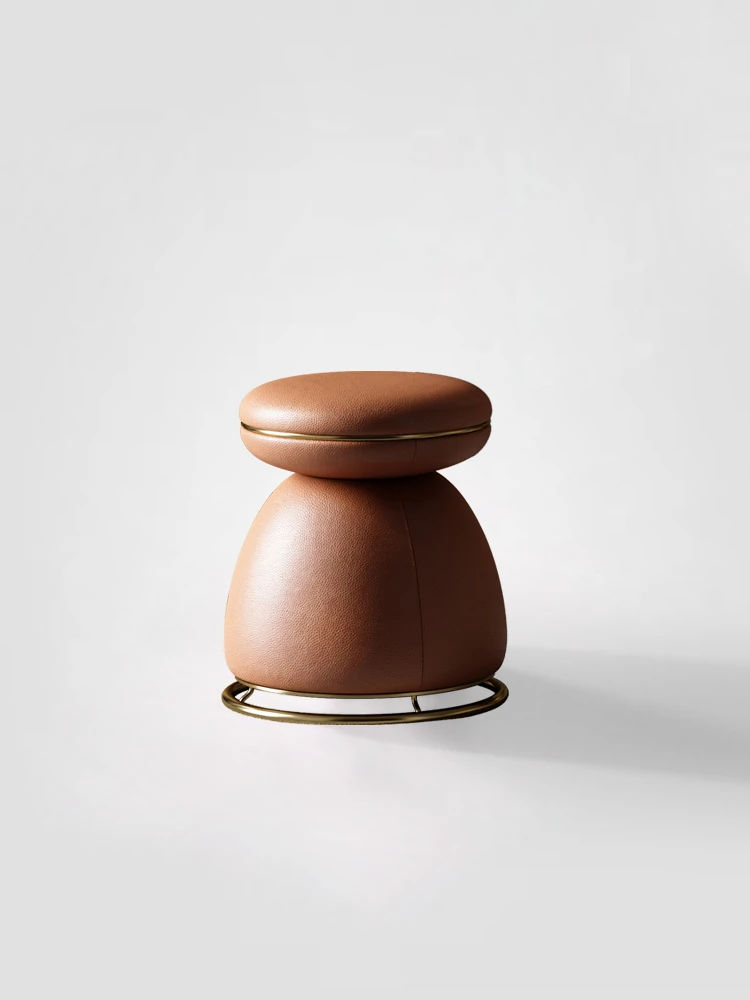 Mobeier Luxury Modern Leather Upholstered Vanity Stool - Stylish and Comfortable Round Seat for Bedroom and Living Room, Perfect for Home Use