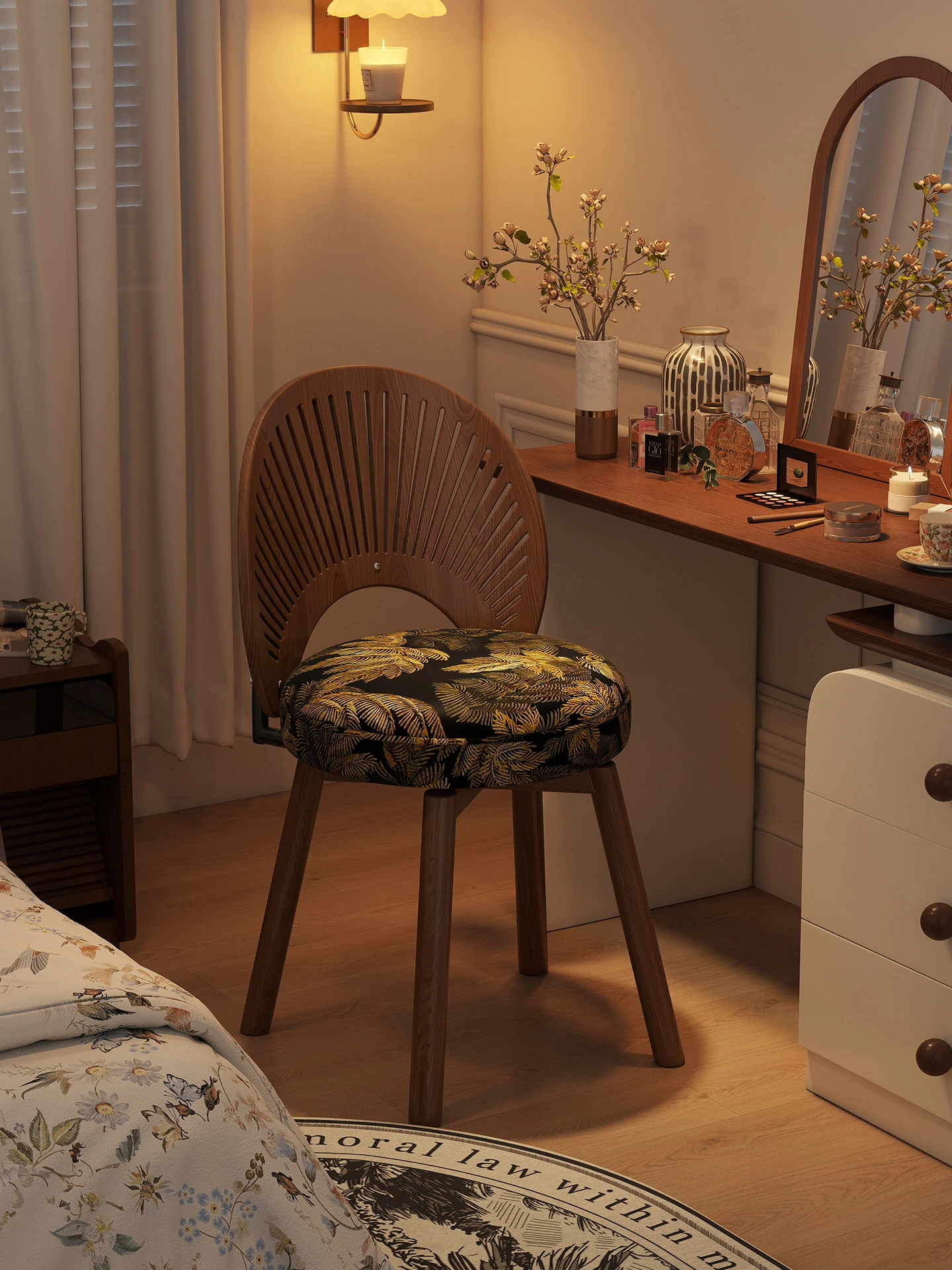 Vintage Rotating Makeup Stool - Elegant Dressing Table Chair for Girls' Bedrooms, Chic Cloakroom Seat, Retro Shell Design