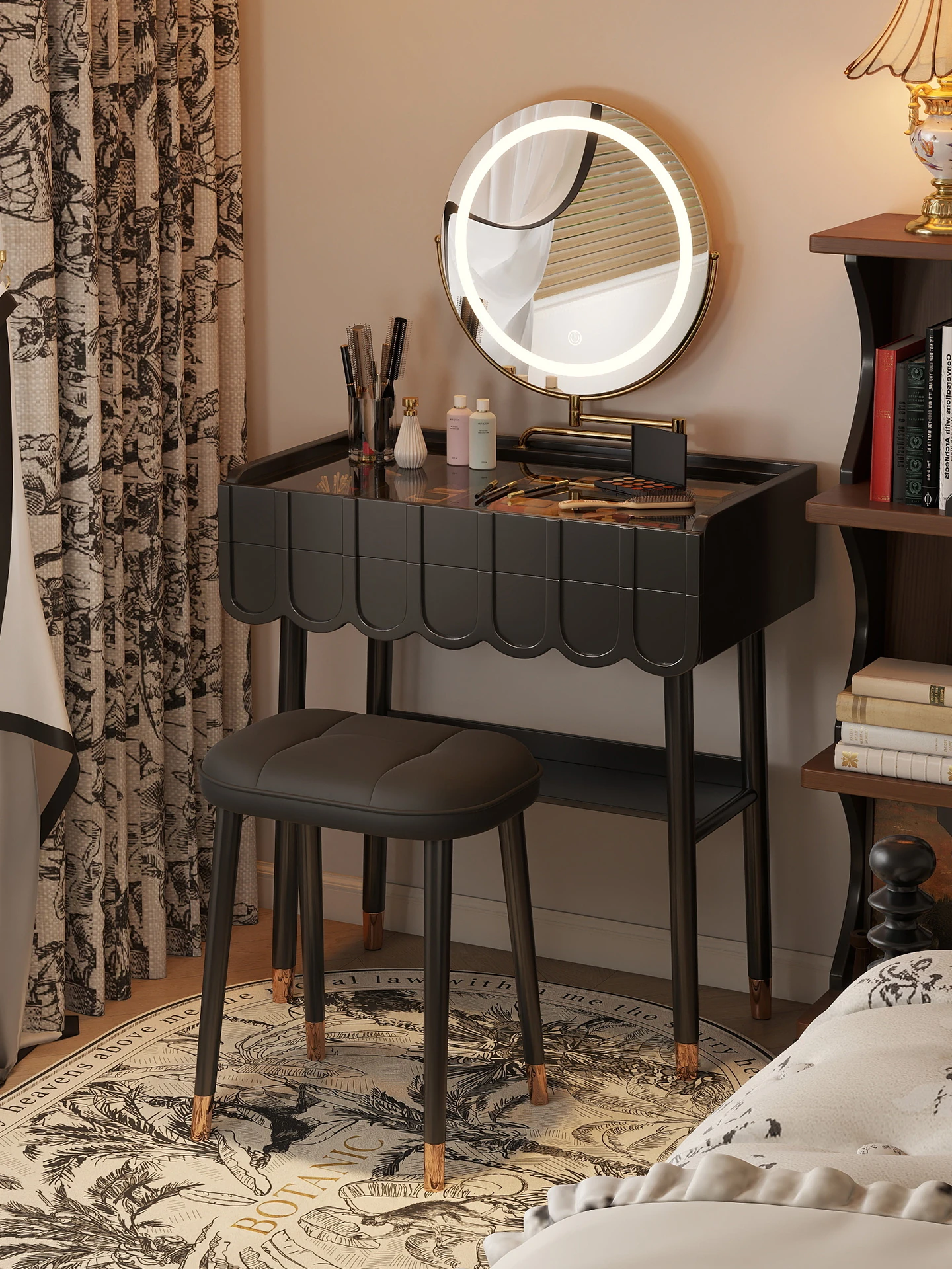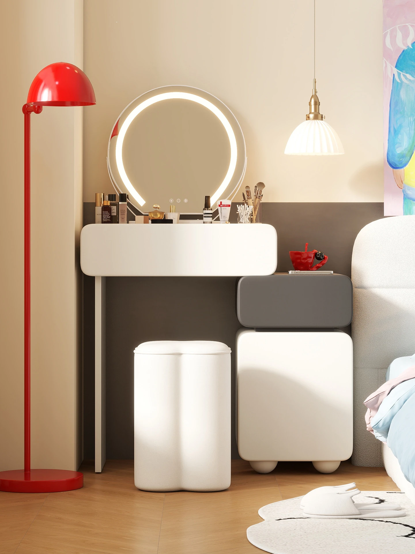 Elegant Modern Vanity Table with Integrated Storage – Luxurious Makeup Desk and Chest of Drawers for Your Master Bedroom, Perfect for a Chic and Organized Space.