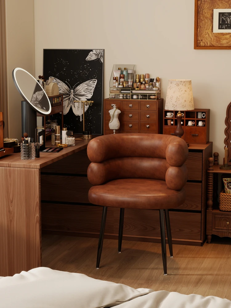 Elegant Makeup Chair for Home Bedroom - Luxury Vanity Stool with Backrest, Stylish Dressing Table Seat, Perfect for Nail Art and Personal Use