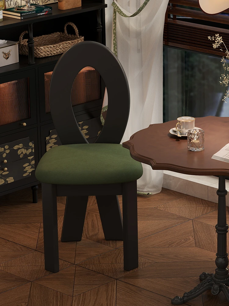 Vintage Solid Wood Makeup Chair - Elegant Dressing Stool for Women's Bedrooms, Perfect for Dressing Tables or High-End Dining Rooms, Mermaid-Inspired Design