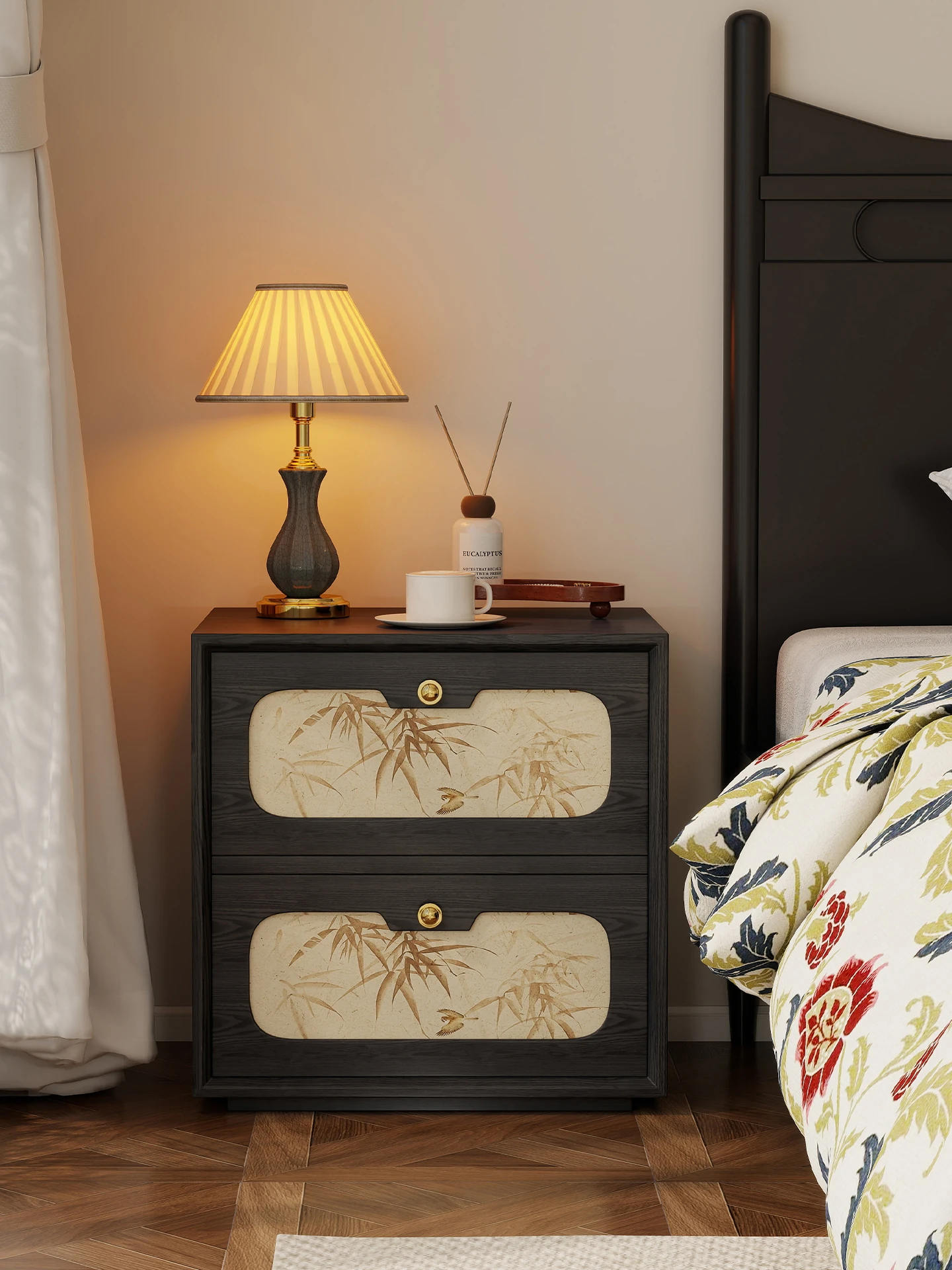 Vintage Solid Wood Nightstand with Creative Silk Fabric Design - Artistic Bedside Storage Cabinet for Home Bedroom
