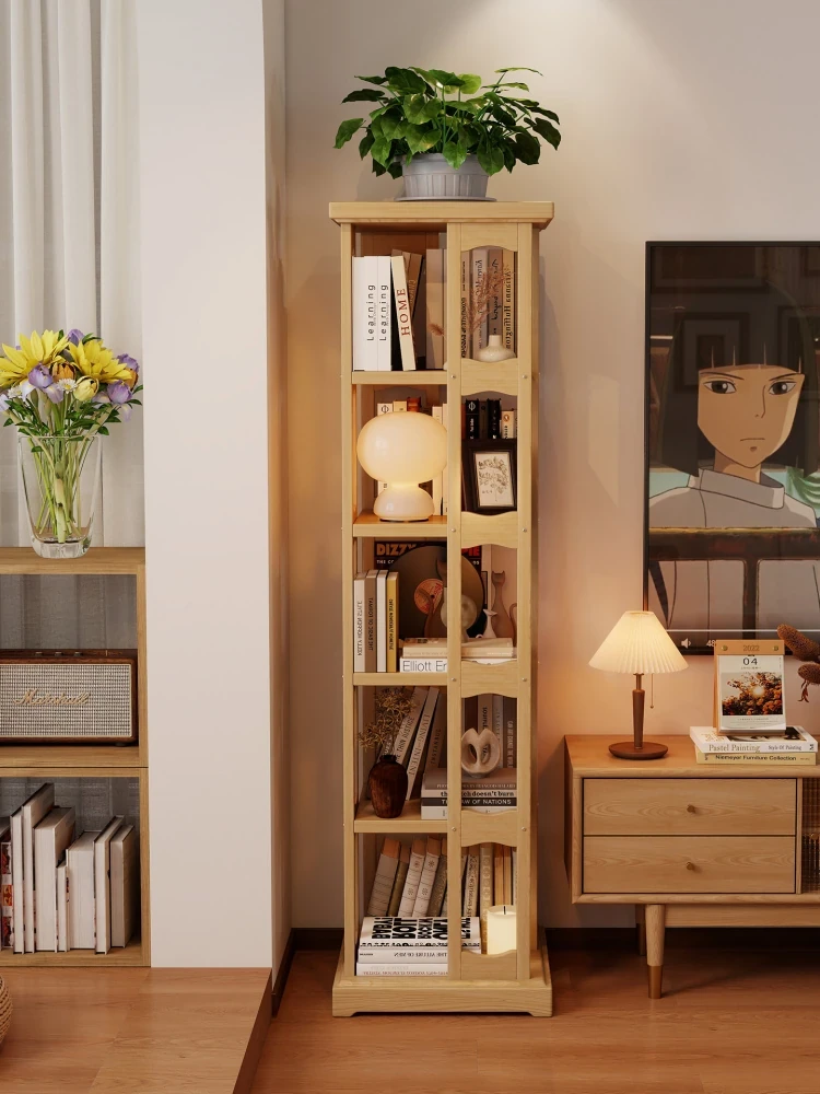 Solid Wood Rotating Bookshelf - Stylish Floor Storage Cabinet for Living Room, Wall-Mounted, Multi-Layer Organizer Display Unit, Perfect for Home Use and Easy Clutter Management!