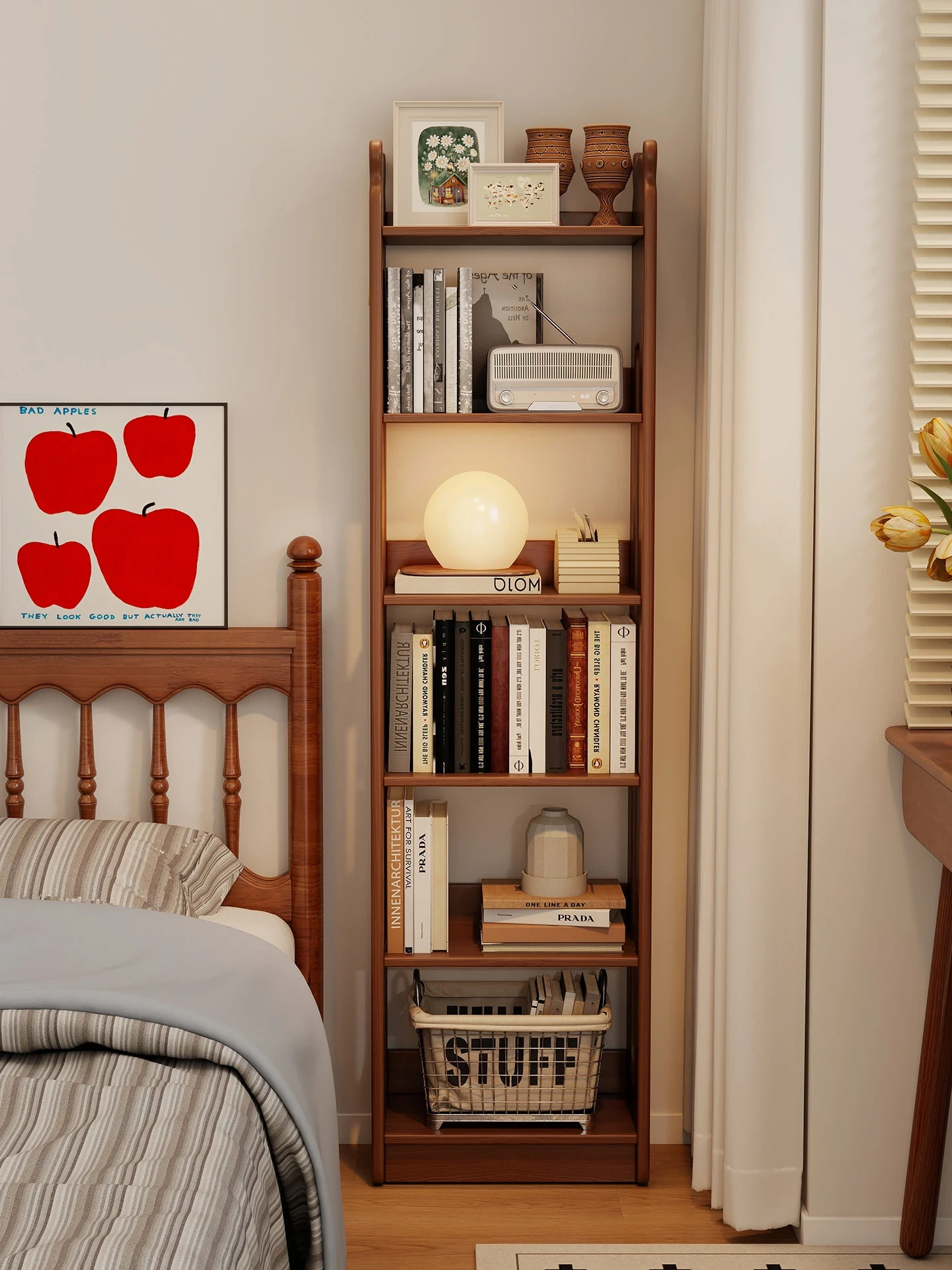 Solid Wood Bookshelf - Freestanding Storage Rack for Kids, Narrow Wall-Mounted Bookcase, Simple Bedroom Organizer for Students, Home Use Shelf - Perfect for Maximizing Space!