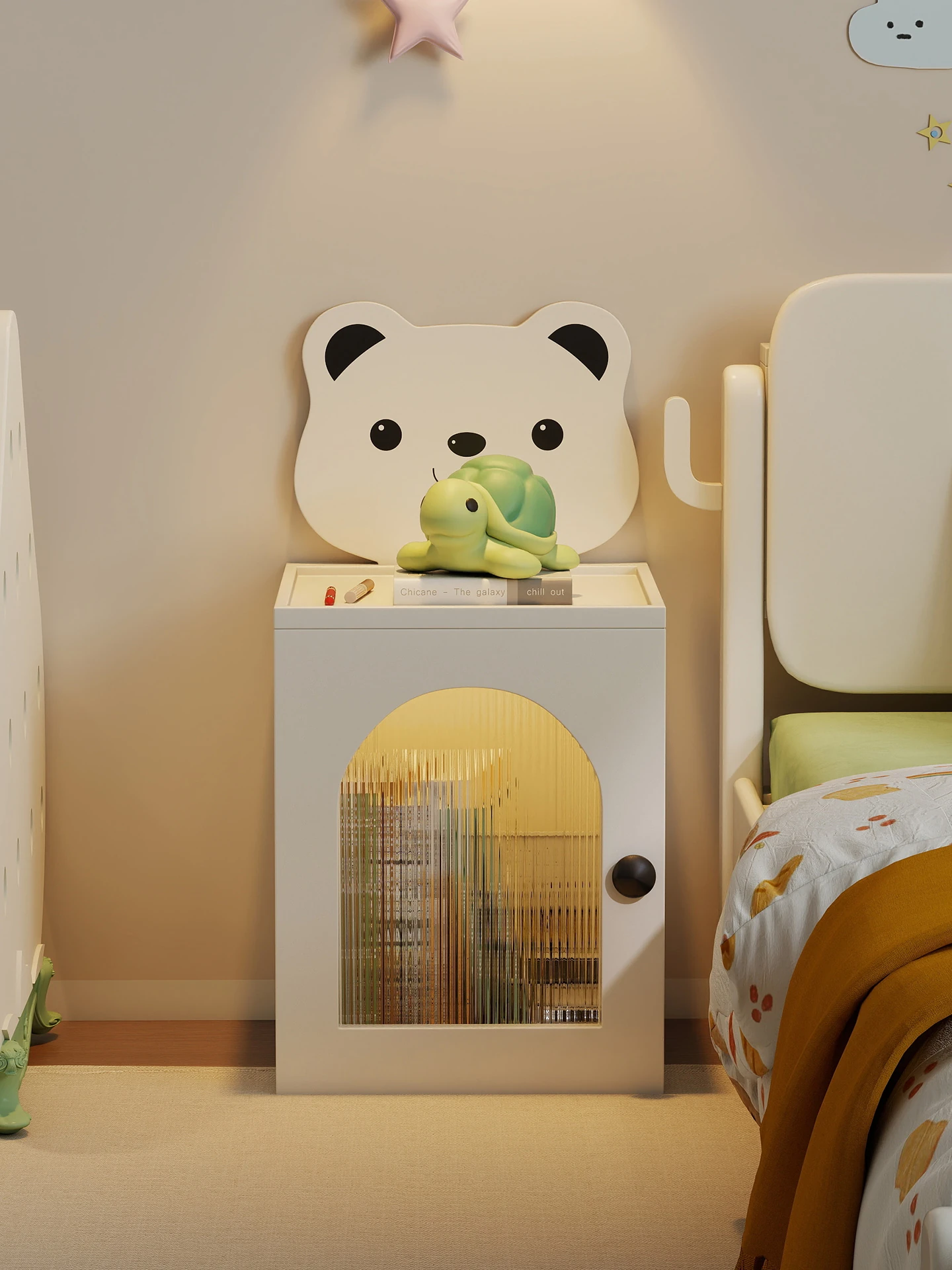 Creative Minimalist Children's Bedside Table with Light - Cute Bear Design, Creamy Aesthetic Nightstand for Kids' Bedroom Storage and Decor