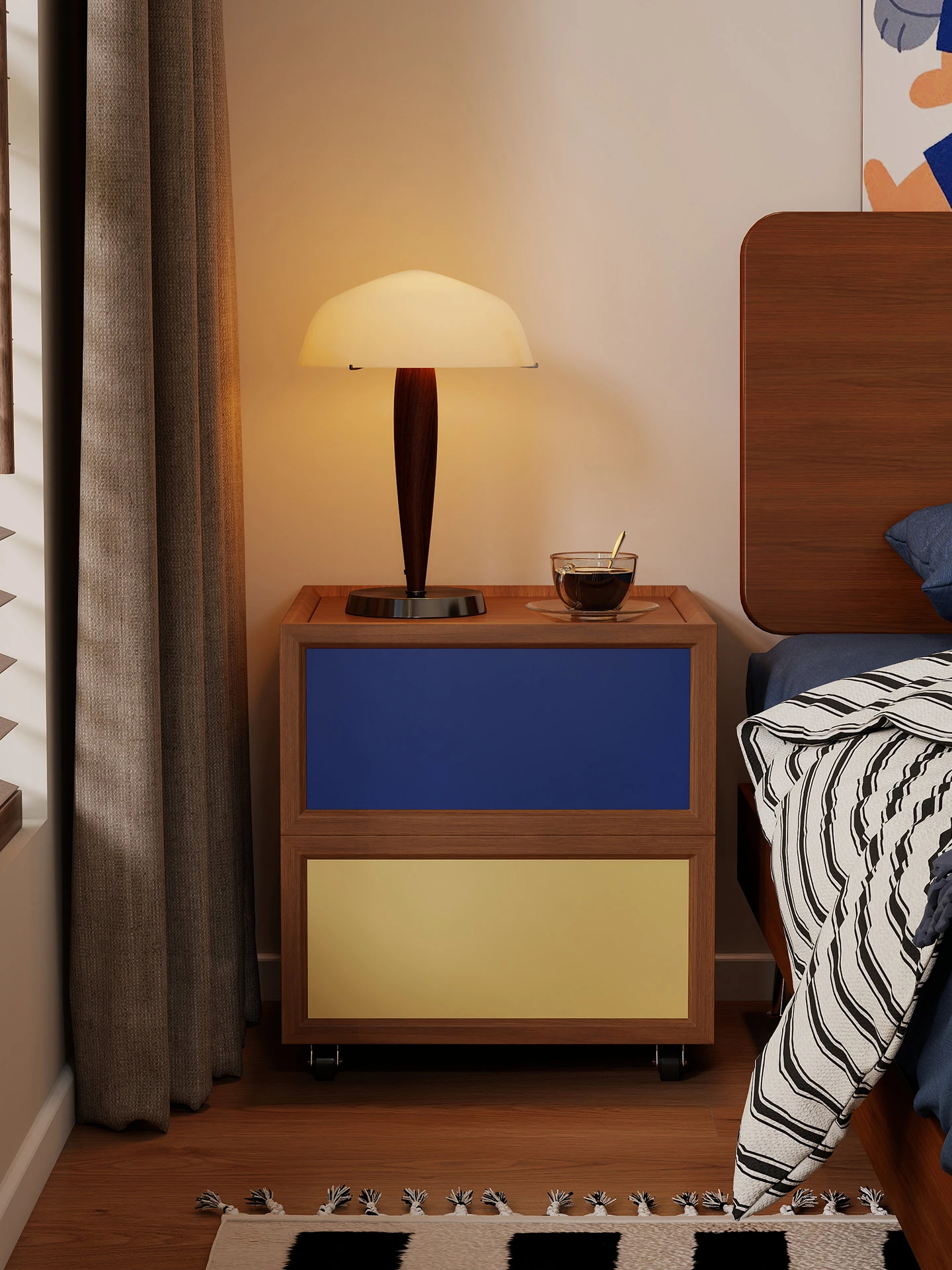 Bauhaus Solid Wood Vintage-Style Colorful Rolling Nightstand - Creative Mobile Storage Cabinet for Bedroom, Ideal Small Side Table with Ample Storage Space