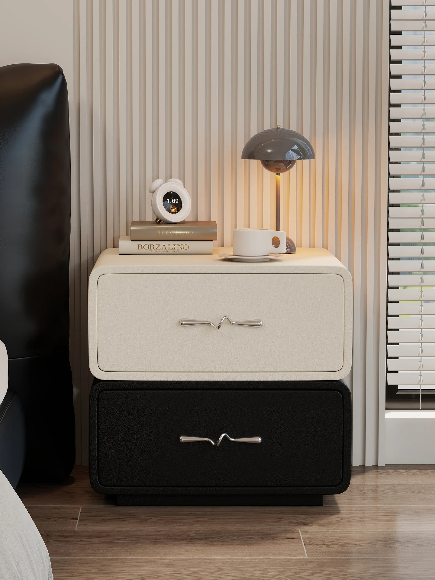 Modern Minimalist Wooden Nightstand with Black and White Dual-Color Drawers - Stylish Bedroom Bedside Storage Cabinet for Elegant Organizing