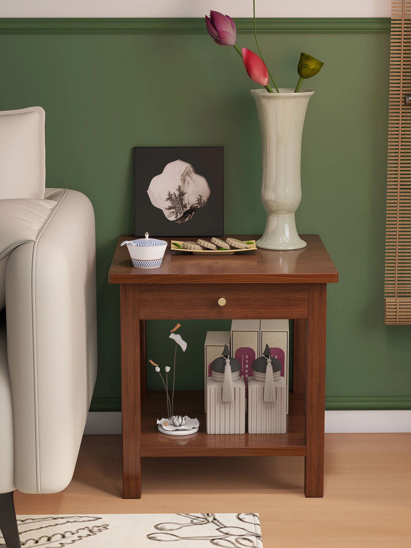 Stylish Solid Wood Movable Sofa Side Table - Minimalist Creative Nightstand for Living Room & Bedroom, Perfect as a Small Coffee Table or Storage Shelf
