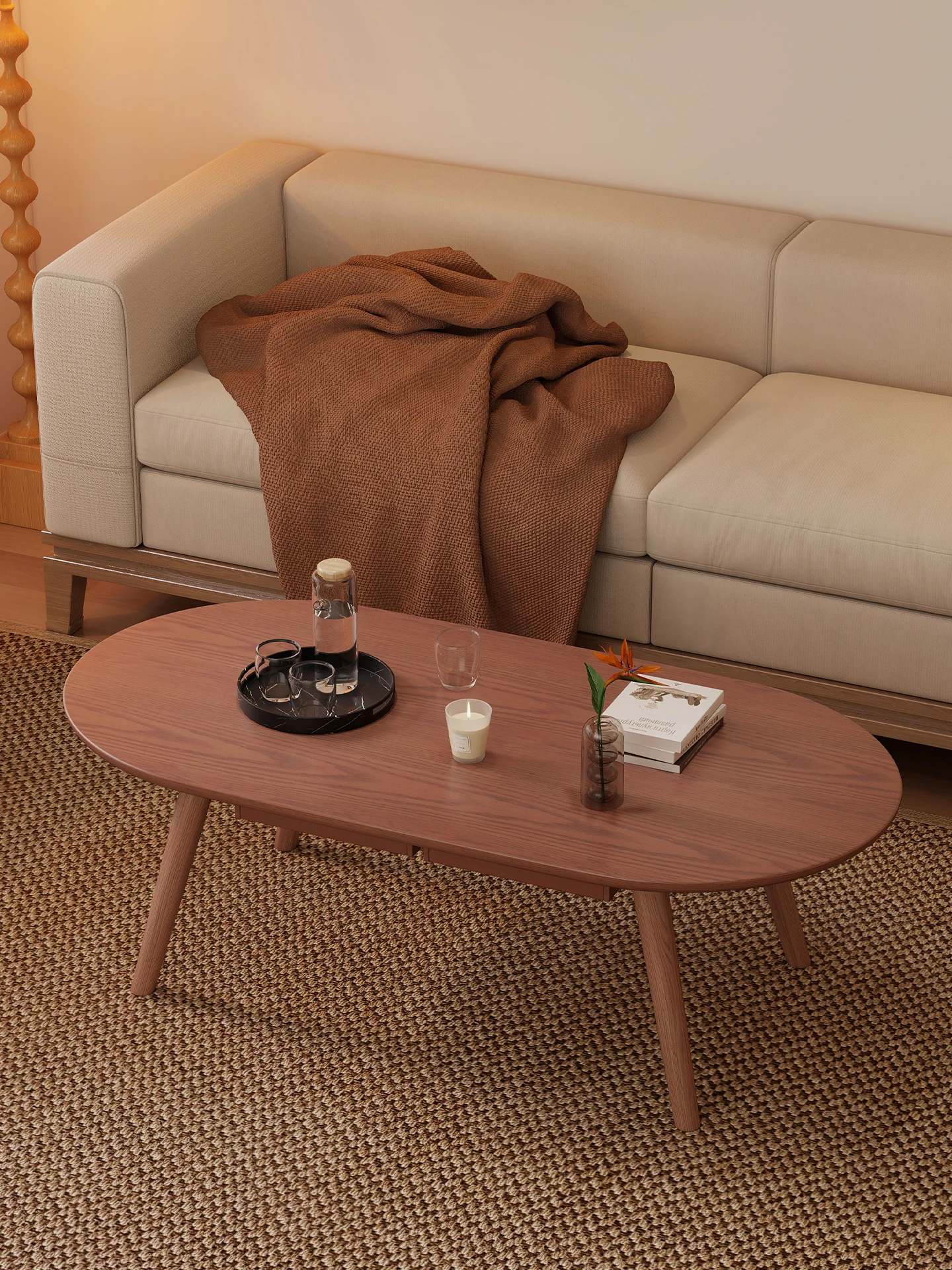 Elegant Oval Double-Layer Solid Wood Coffee Table for Small Spaces - Modern Minimalist Design with High-Quality Stone Top