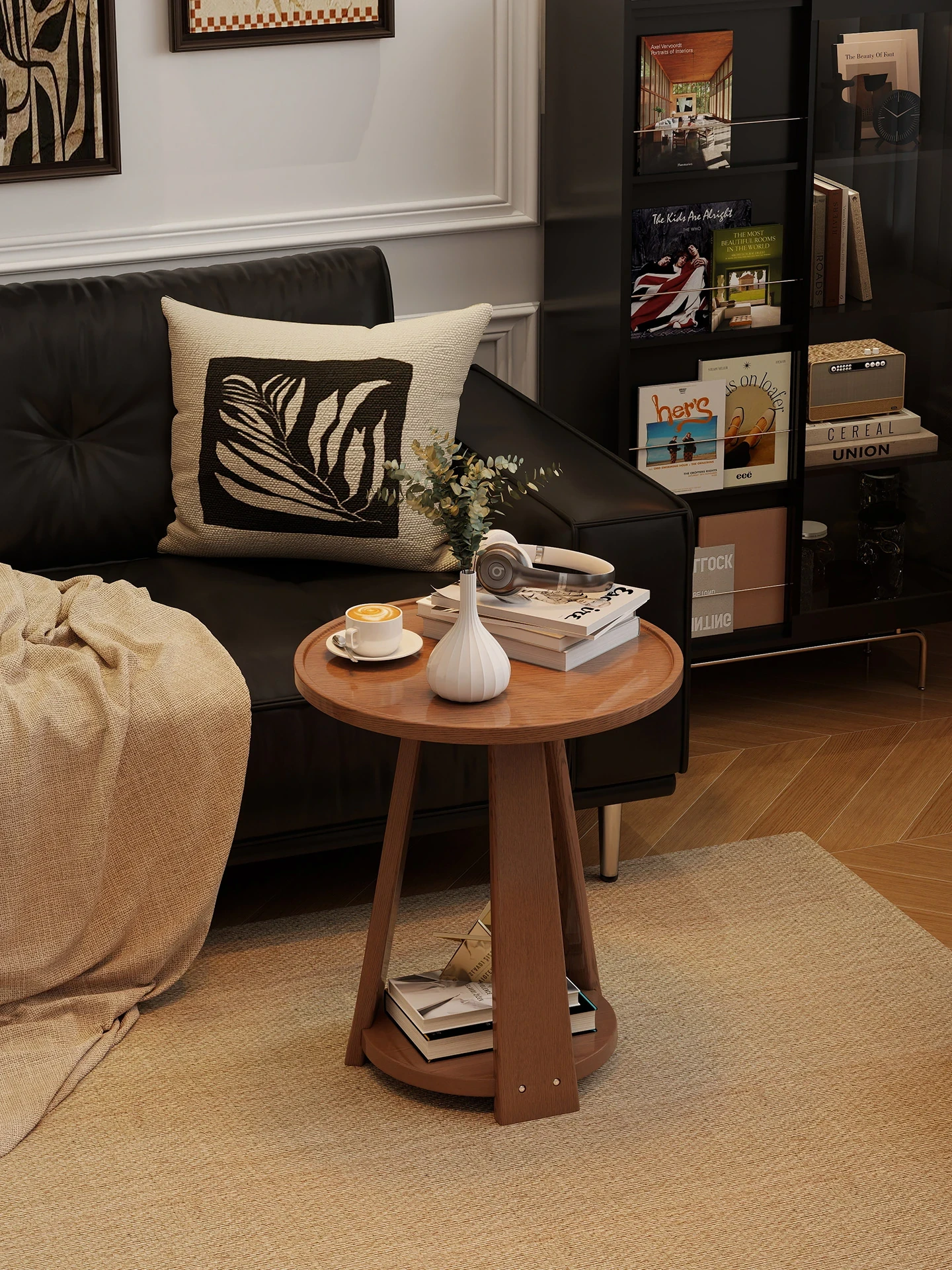 Solid Wood Side Table for Small Living Rooms and Balconies - Creative Round Coffee Table, Ideal for Compact Spaces and Cozy Corners