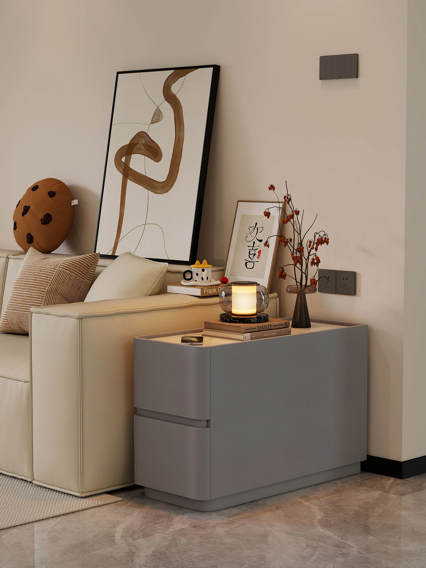 Italian Style Slim Side Table - Modern Solid Wood Sofa Side Cabinet for Living Room, Minimalist Design with Storage Space, Perfect for Home Use