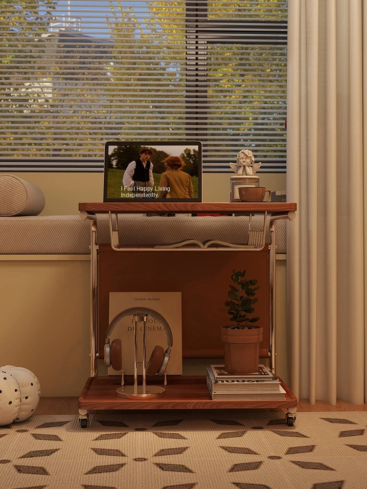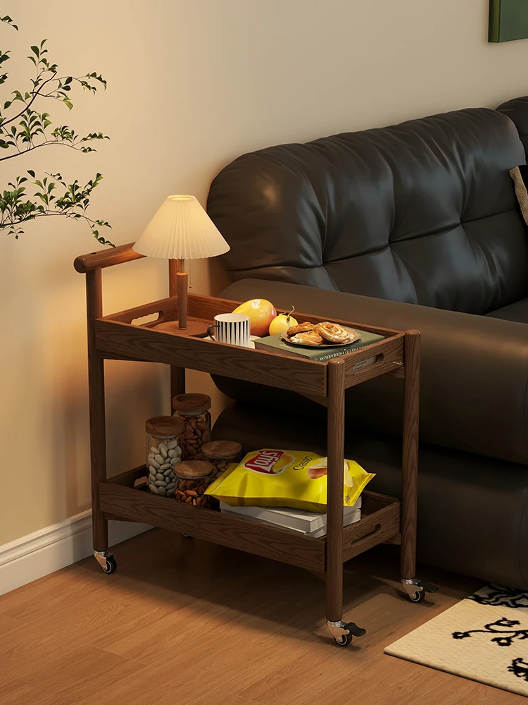 Solid Wood Sofa Side Table - Mobile Storage Cart for Living Room, Perfect for Organizing and Displaying with Stylish Design - Versatile Side Cabinet for Easy Access and Convenience