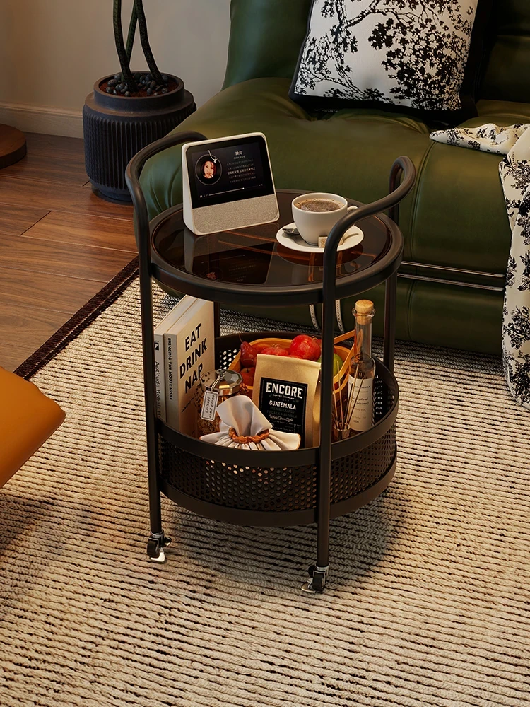 Mobile Side Table with Wheels - Versatile Round Coffee Table for Living Room, Bedside Storage Rack - Trendy and Functional Design for Home Use