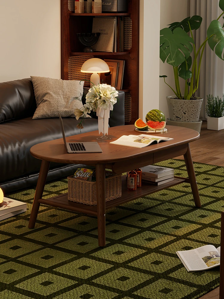 Vintage Solid Wood Coffee Table with Storage - Modern Minimalist Design for Small Living Rooms, Ideal for Tea Lovers and Stylish Interiors.