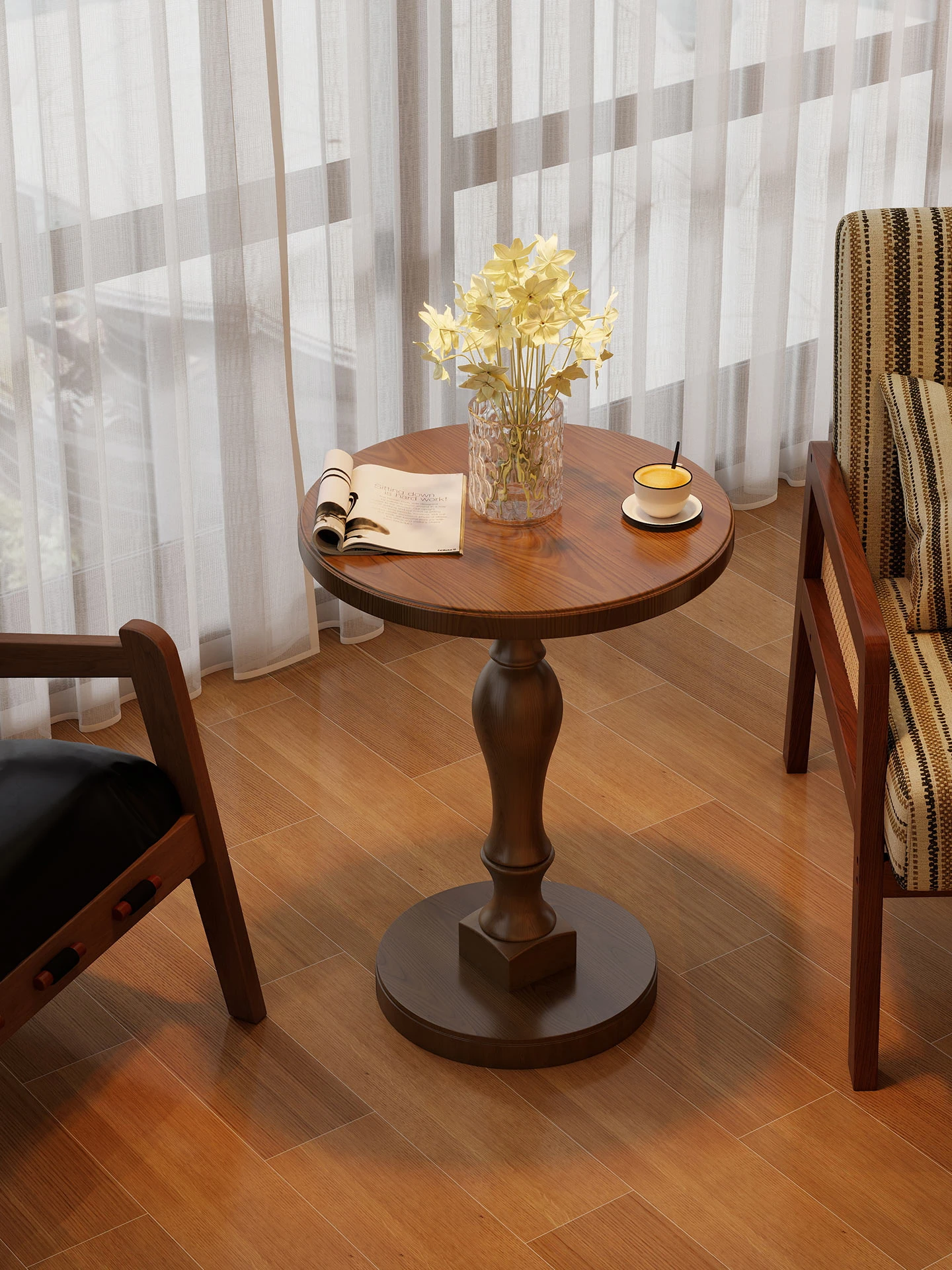 Vintage Solid Wood Round Coffee Table - Minimalist Design for Living Room, Sofa Side, Balcony, or Bedside Use - Perfect Small Tea Table for Cozy Spaces