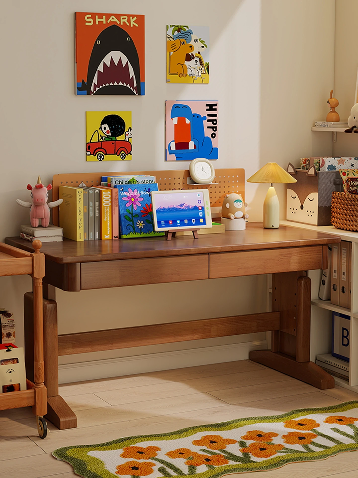 Adjustable Solid Wood Study Desk for Kids - Perfect for Home Use, Ideal for Elementary to High School Students, Compact Design for Bedroom or Bedside, Simple Writing and Computer Desk