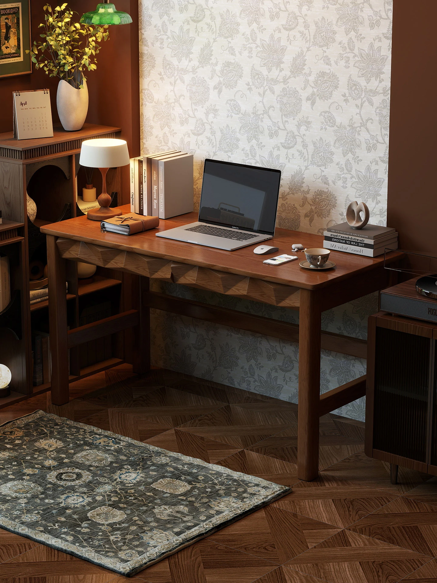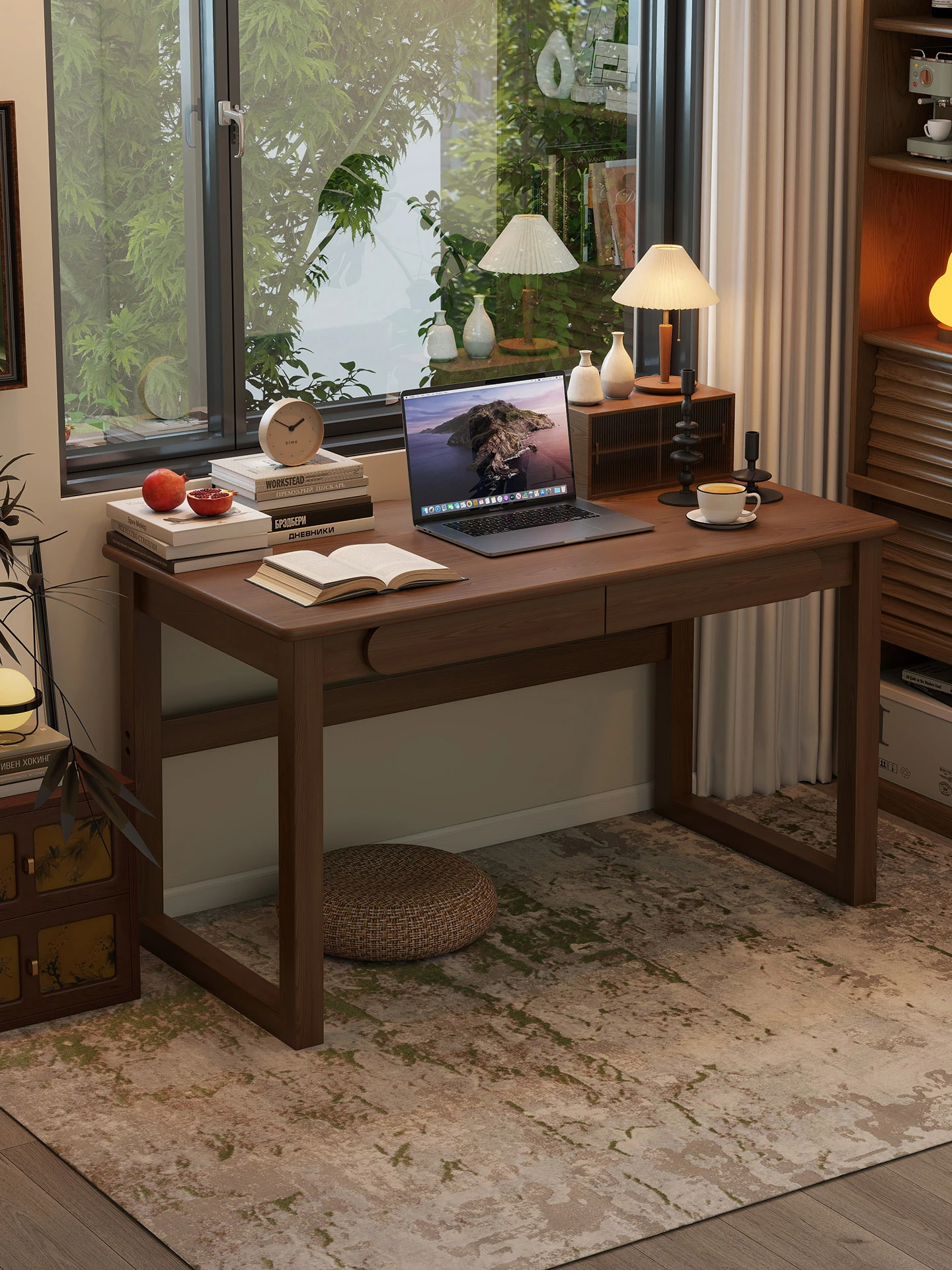 Vintage Style Solid Wood Study Desk for Students - Minimalist High-End Writing Table with Double Drawers, Perfect for Home and Bedroom Use