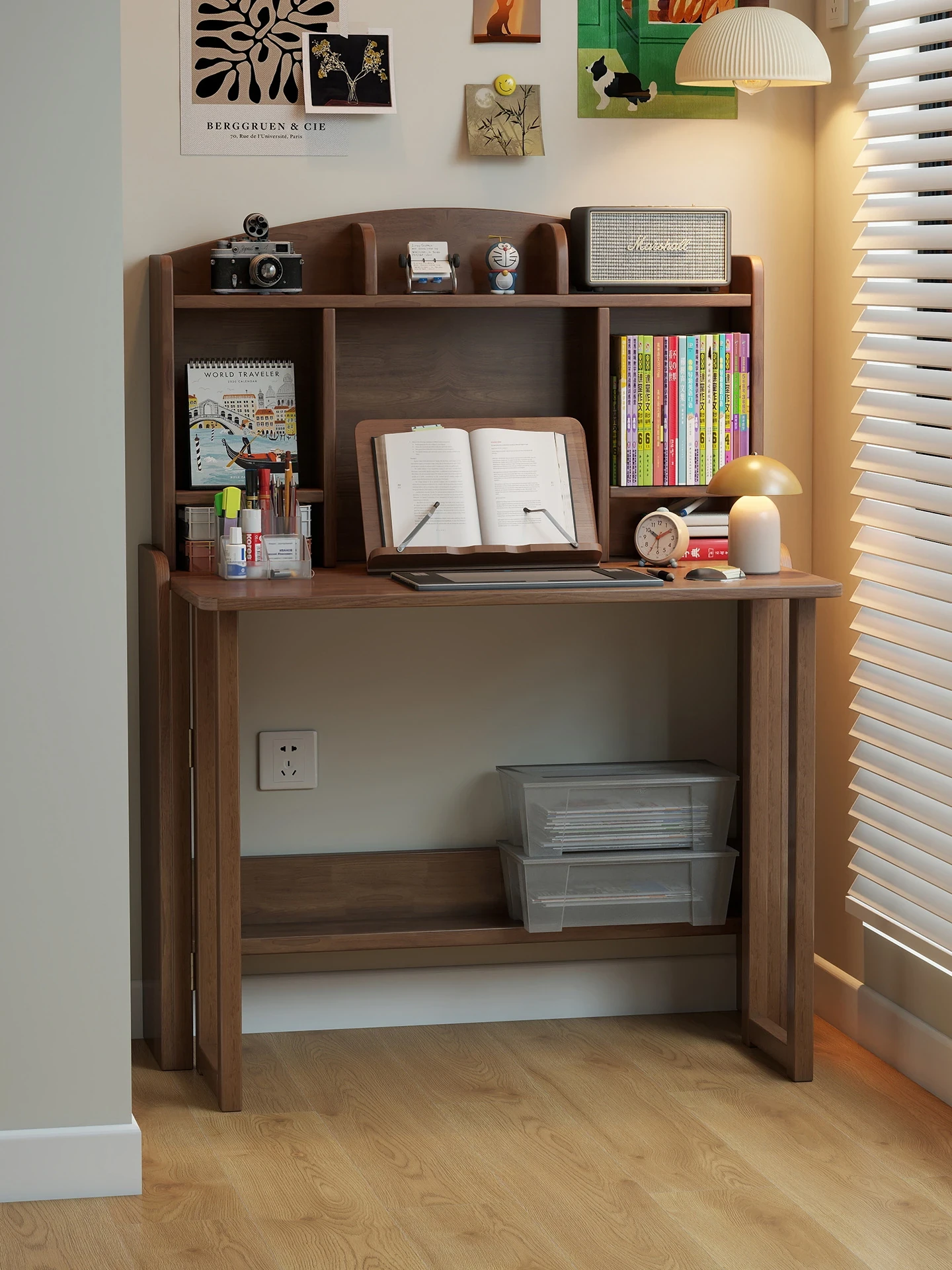 Vintage-Style Solid Wood Folding Desk and Bookshelf Combo - Perfect for Home, Student Study, Writing, and Minimalist Bedroom Computer Use