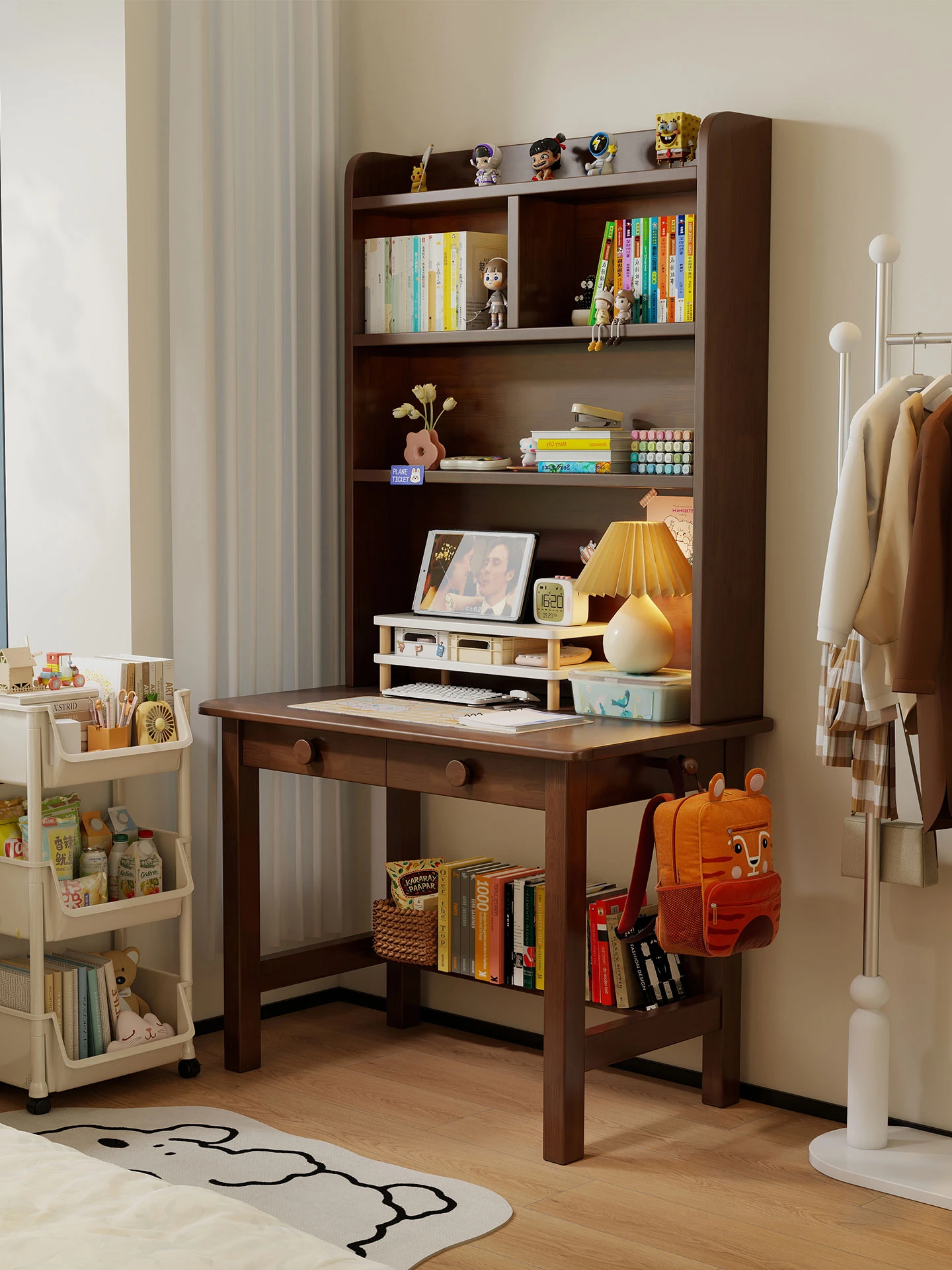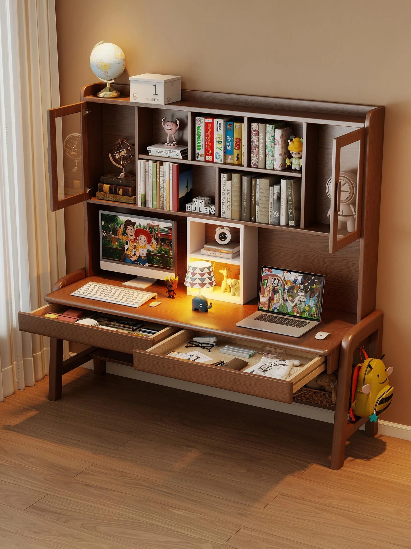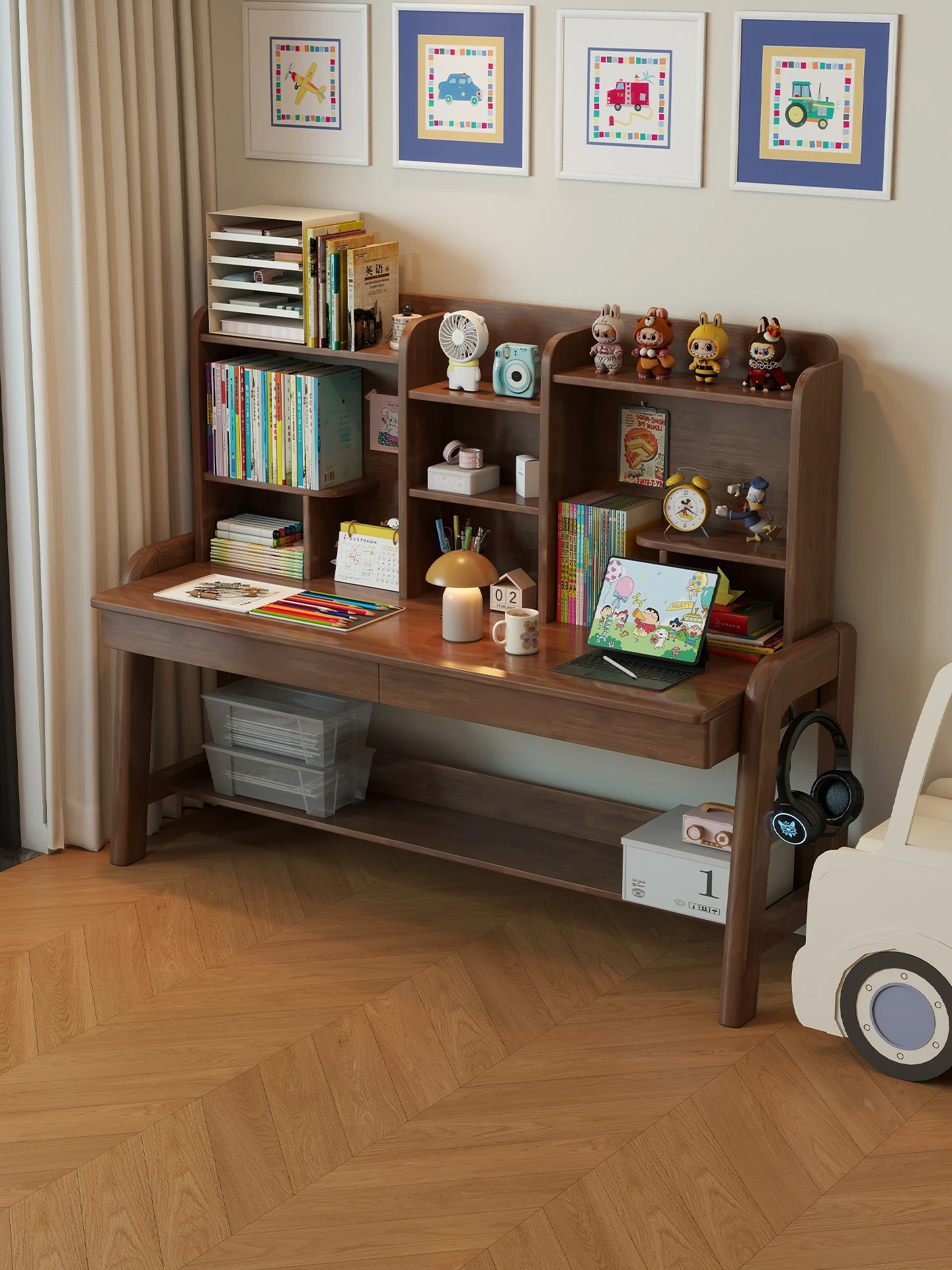 Solid Wood Dual-Purpose Desk and Bookshelf for Kids - Adjustable Height Writing Table for Elementary and Middle School Students, Perfect for Learning and Study!