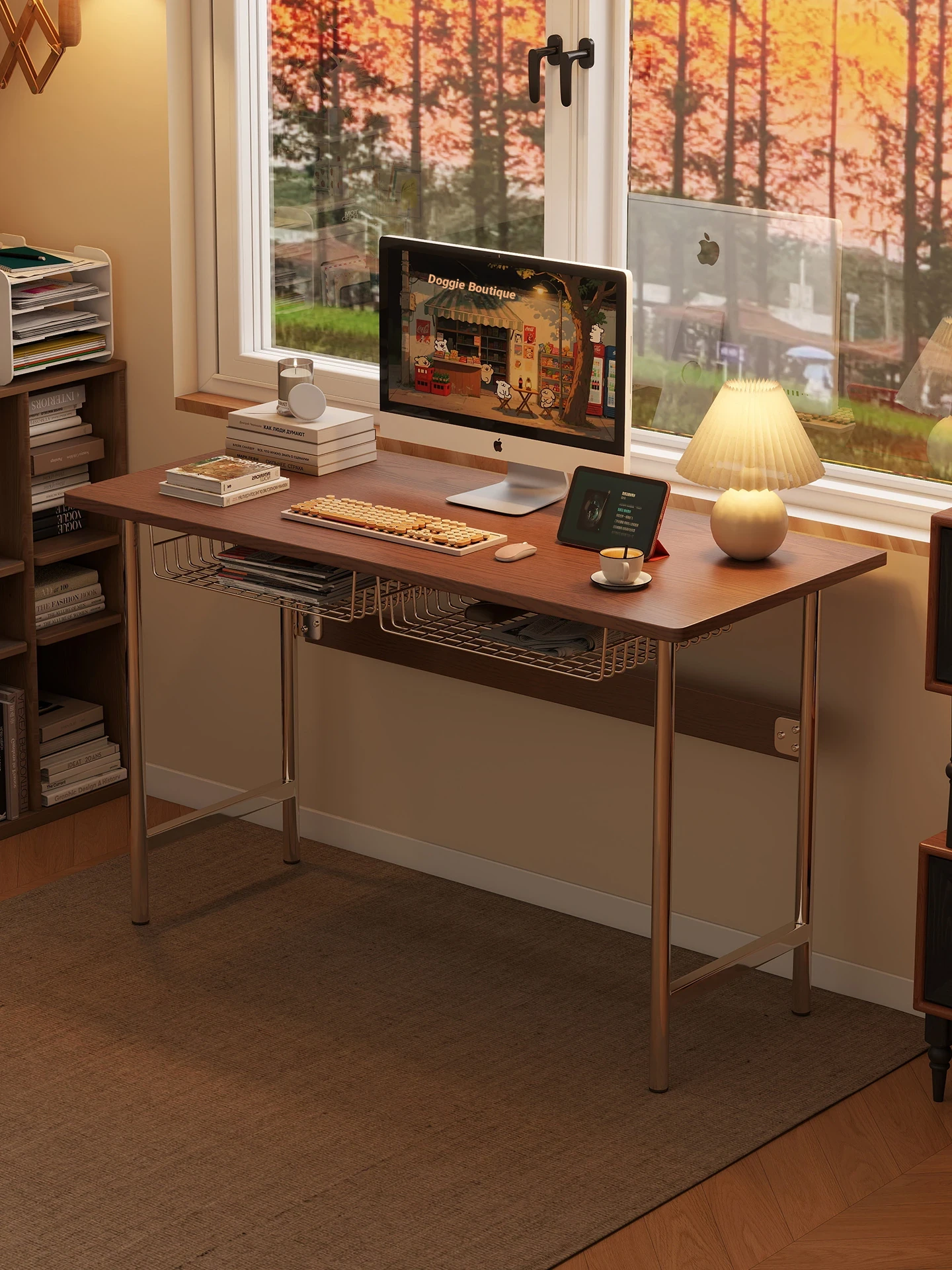 Stylish Solid Wood Computer Desk - Rectangular Stainless Steel Office & Study Table for Bedroom - Space-Saving Narrow Writing Desk