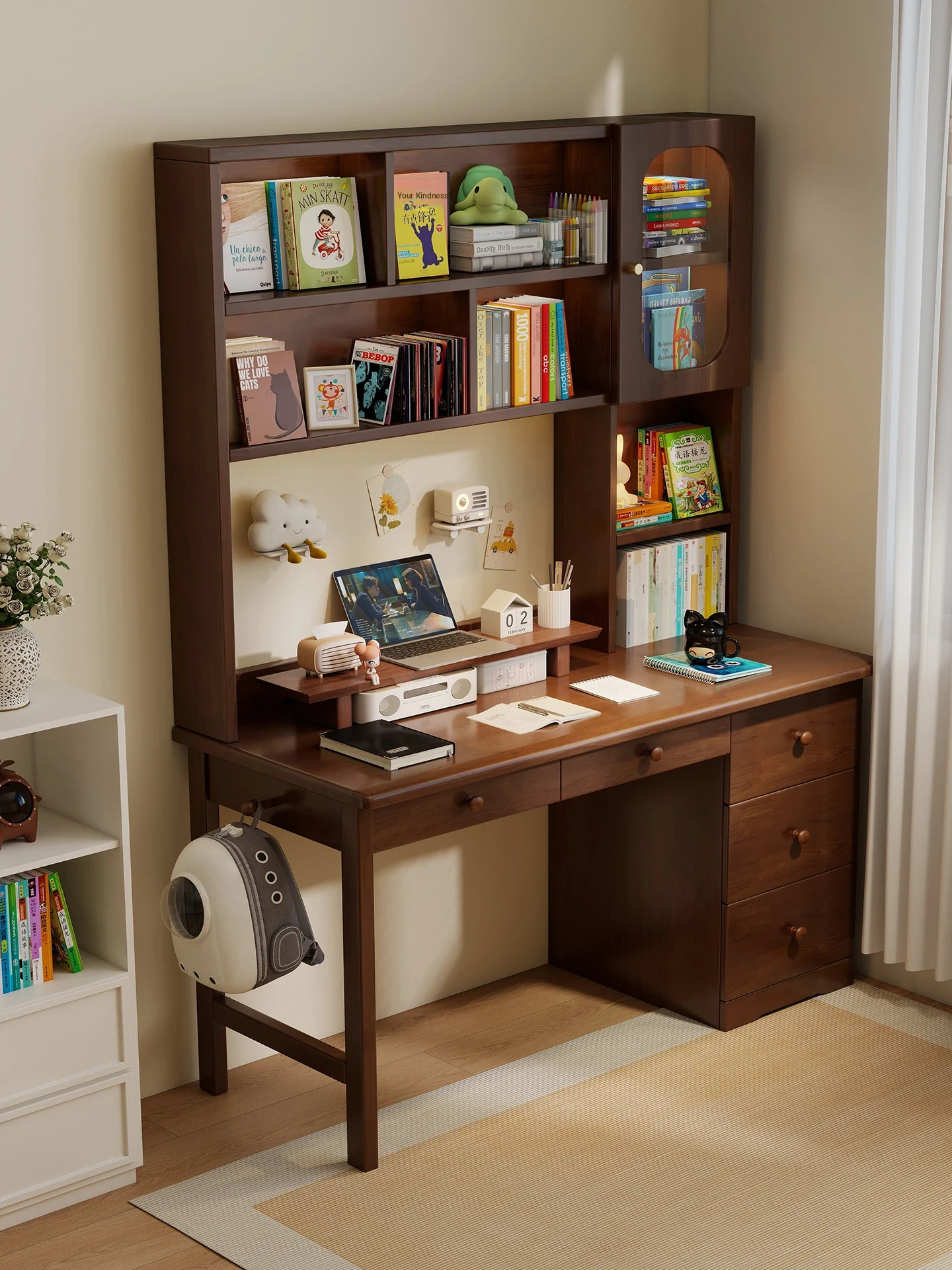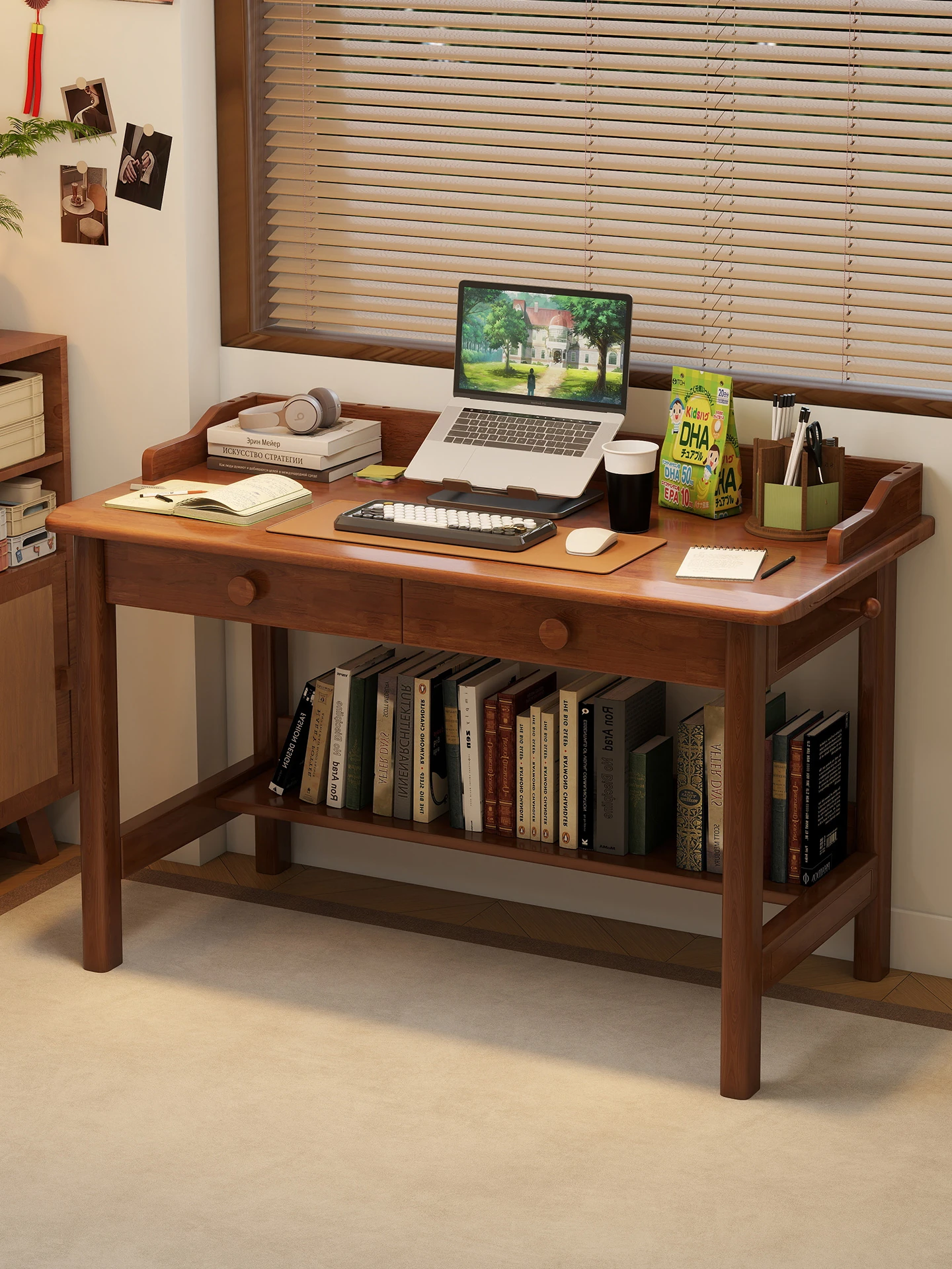 2025 New Multi-Functional Solid Wood Desk with Bookshelf for Small Spaces - Ideal Home Study and Student Writing Desk, Computer Table, and Workstation
