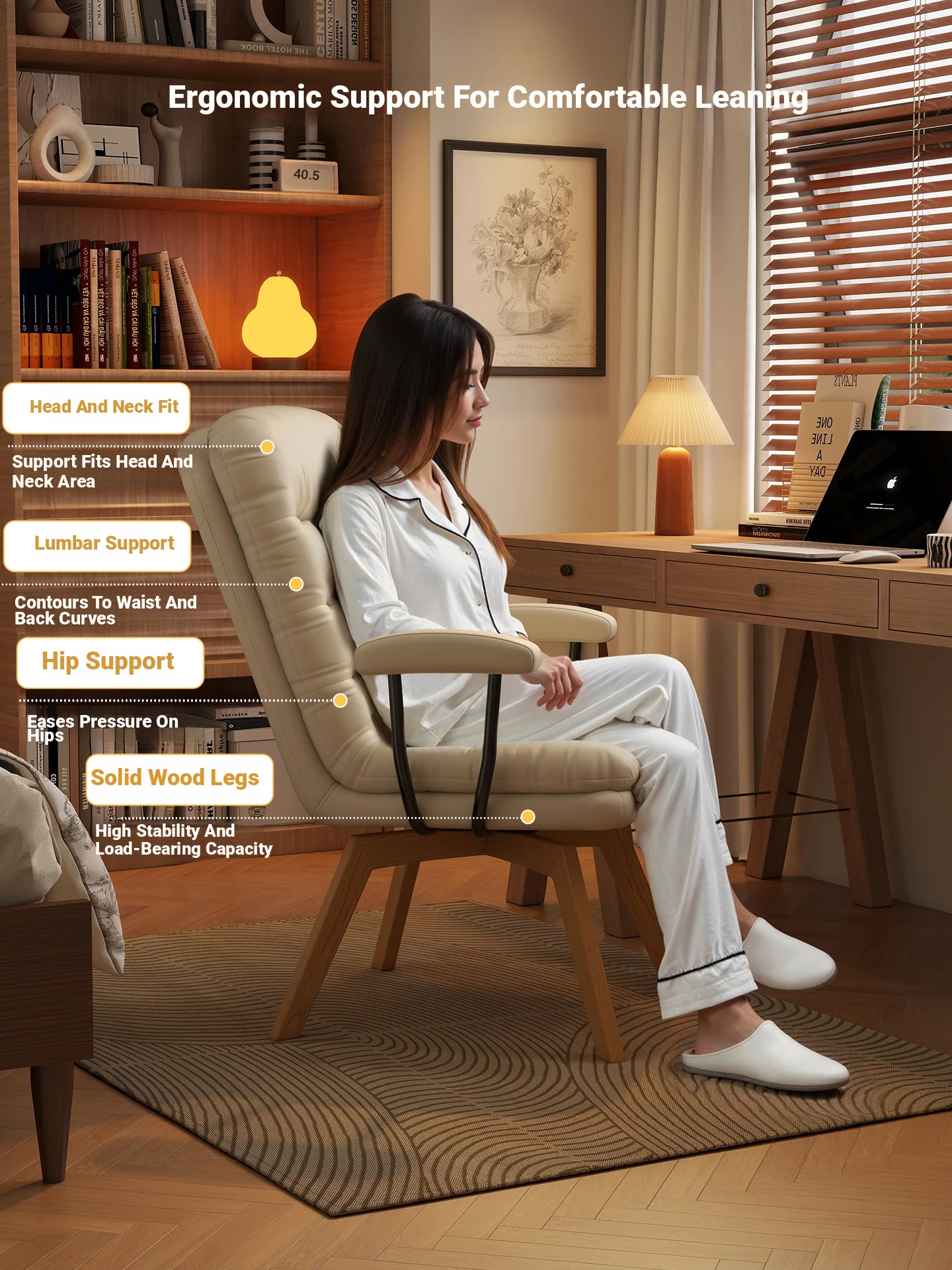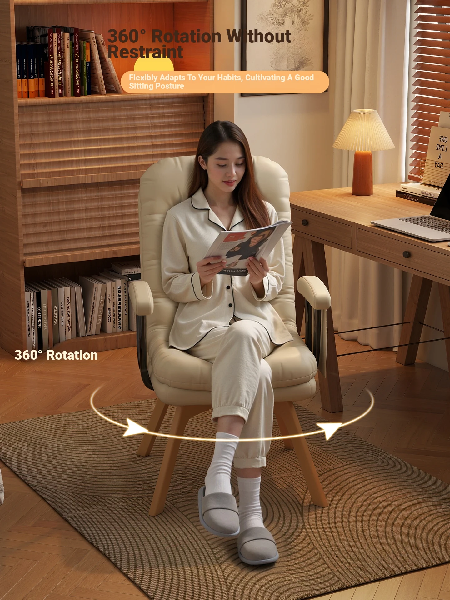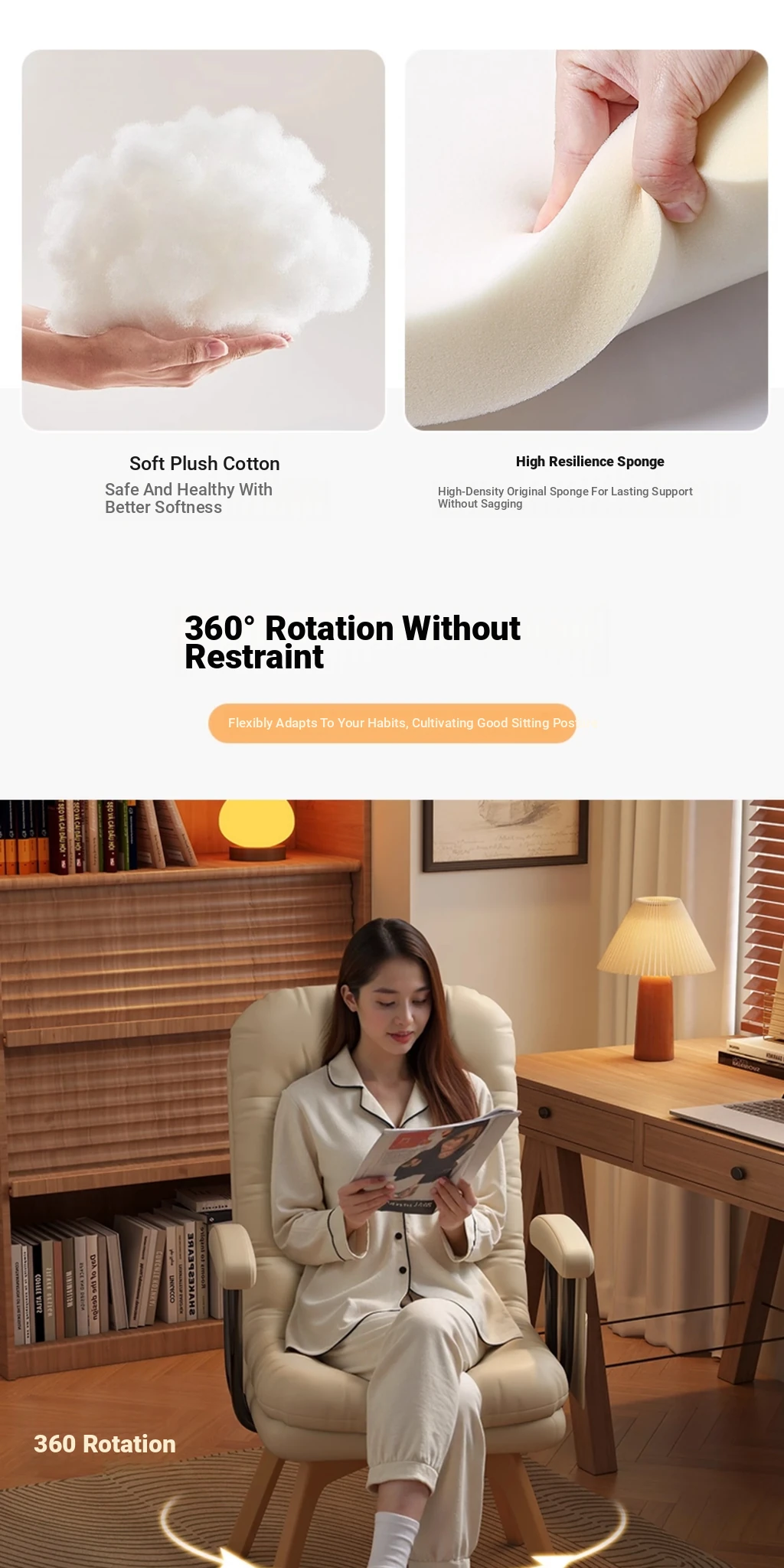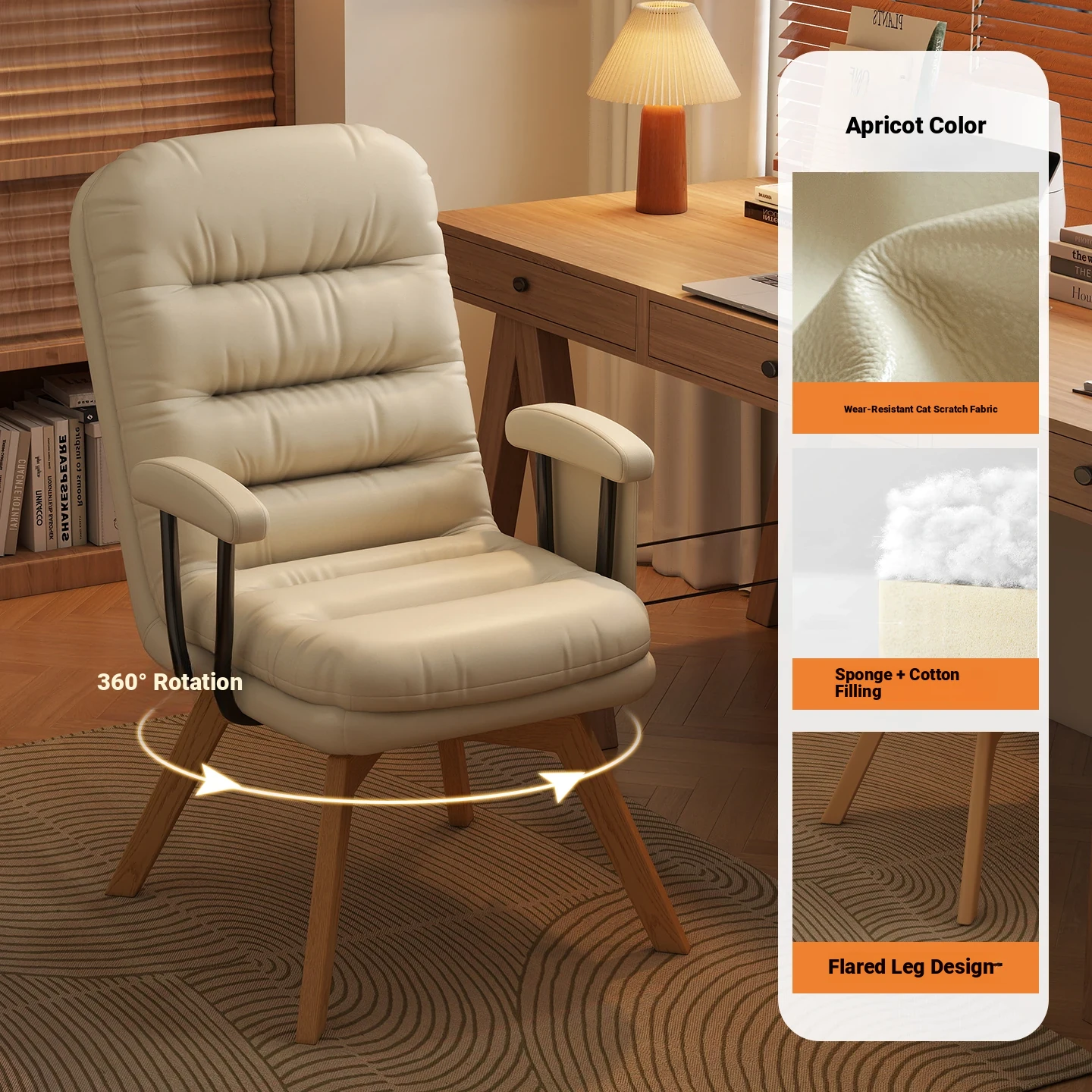Rotate | Apricot-adjustable backrest [Abrasion Resistant cat scratch]]