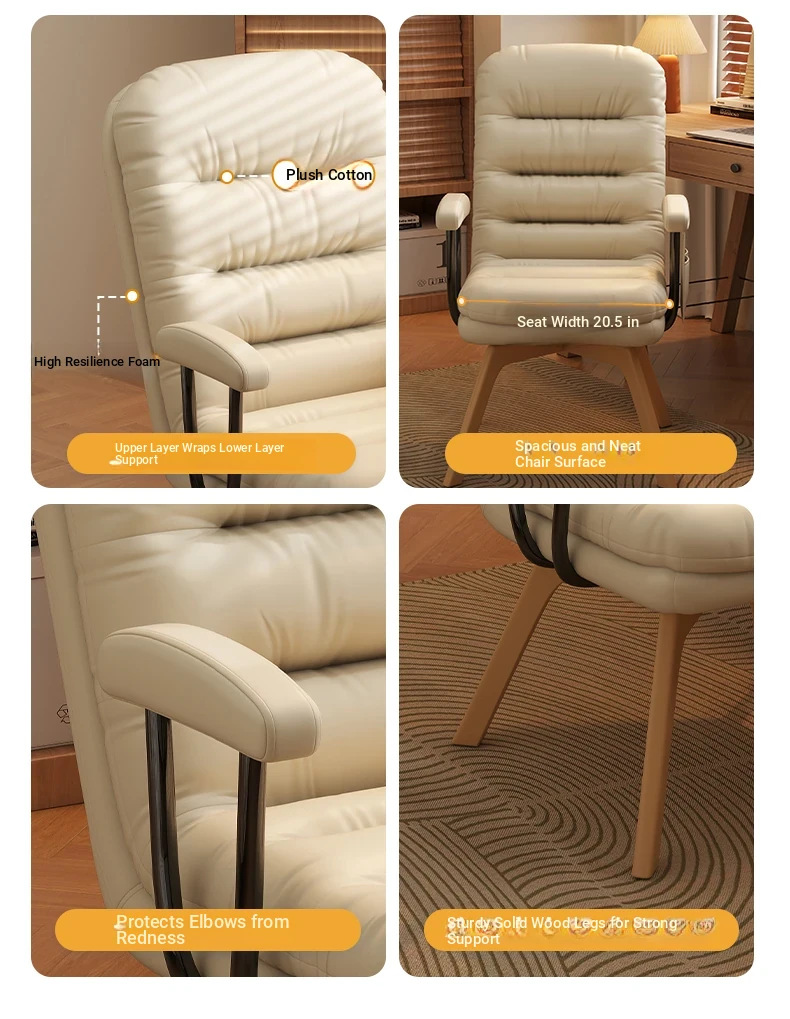2025 New Adjustable Solid Wood Vanity Chair with Comfortable Backrest for Women - Stylish Rotating Makeup Chair for Your Dressing Table