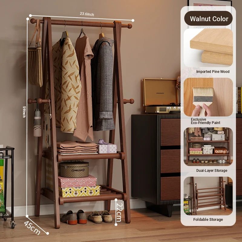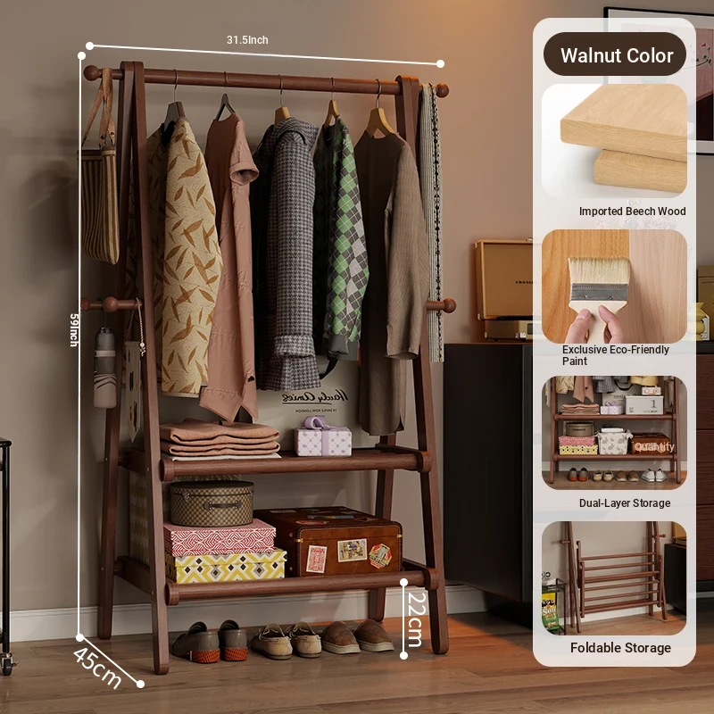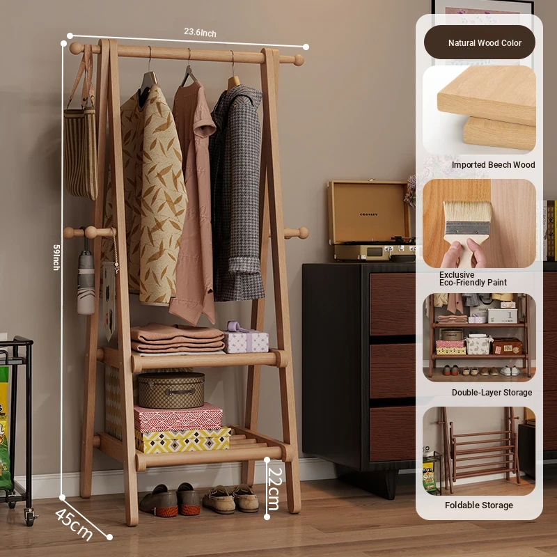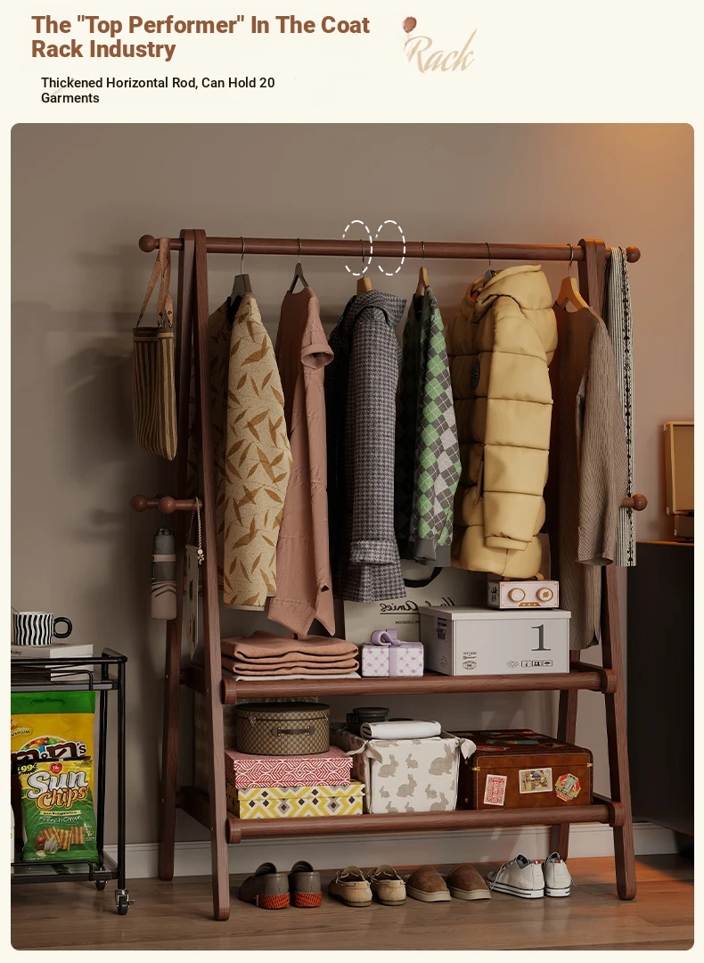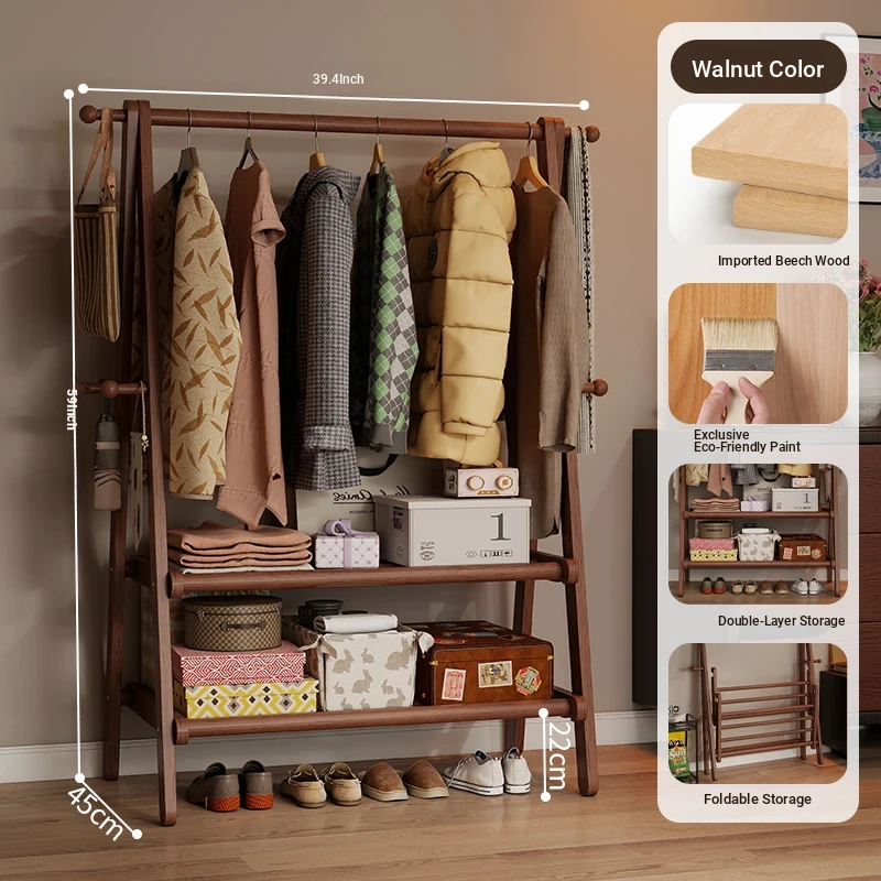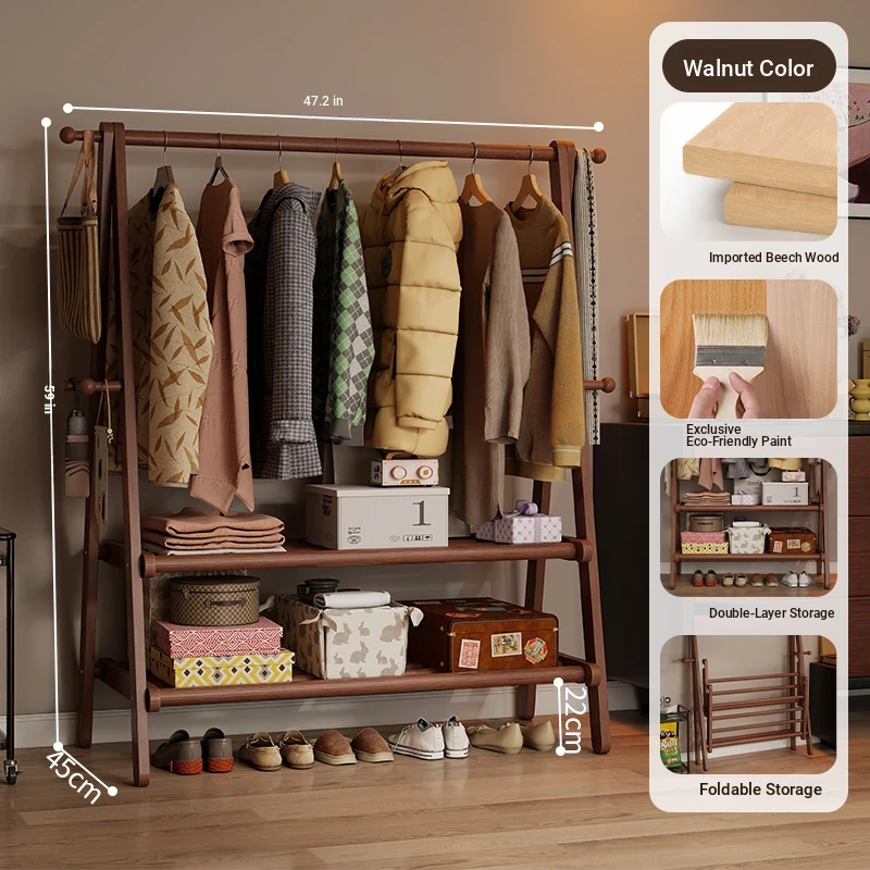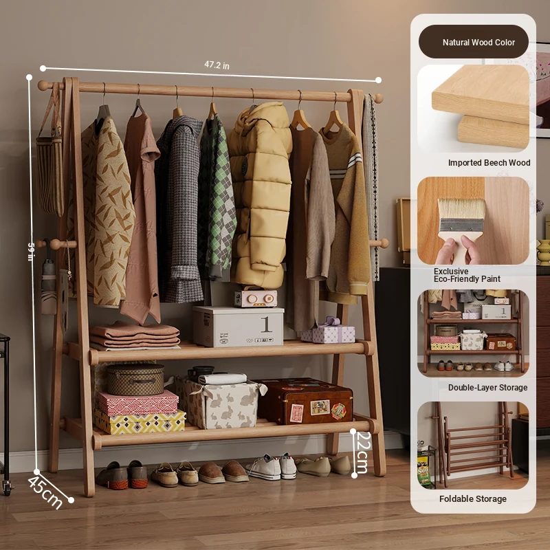 2025 New Solid Wood Coat Rack - Stylish, Foldable Floor Stand for Bedroom, Home Use, Luxury Clothes Hanger and Vertical Storage Solution