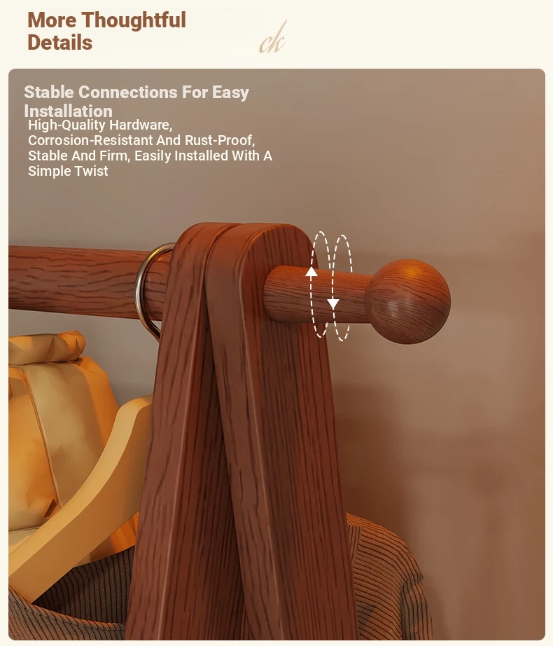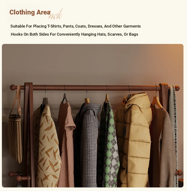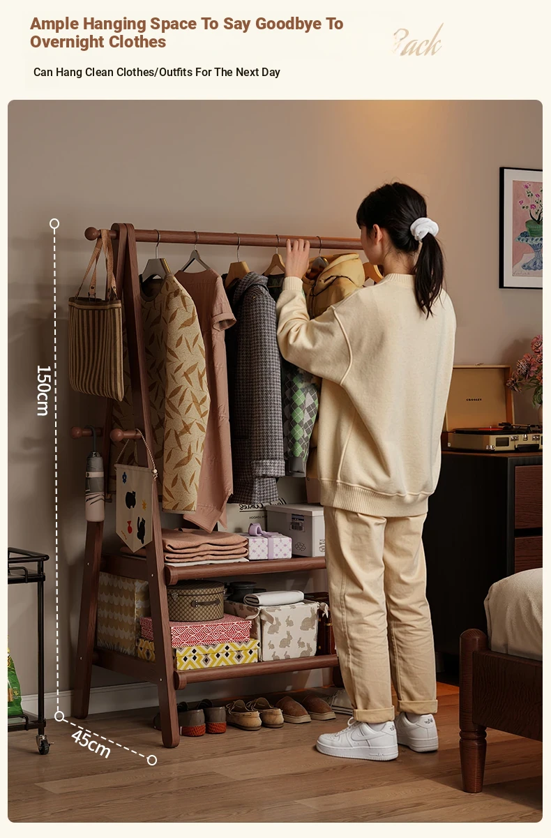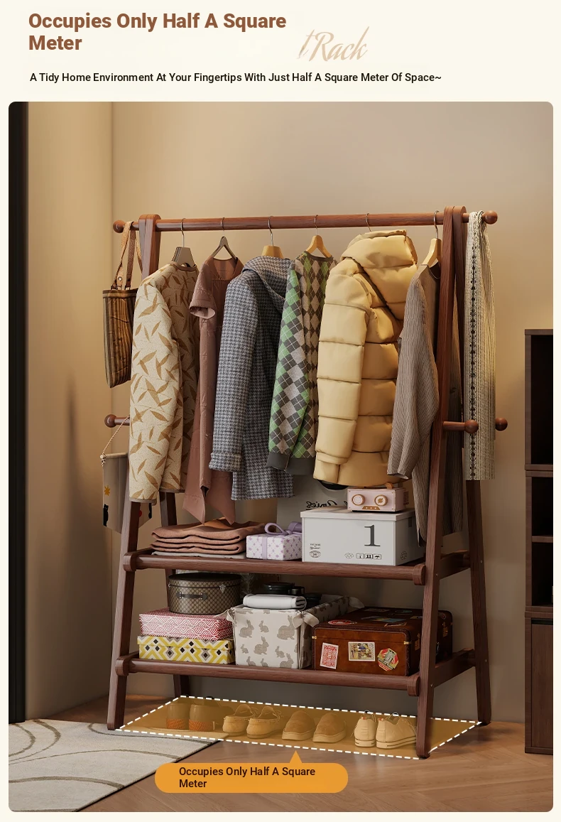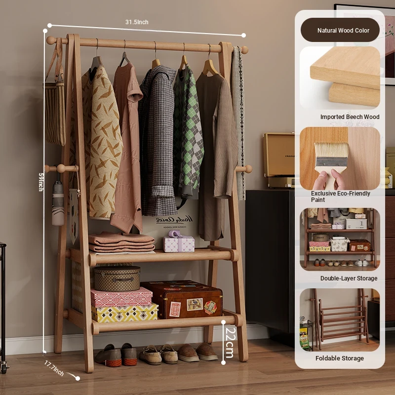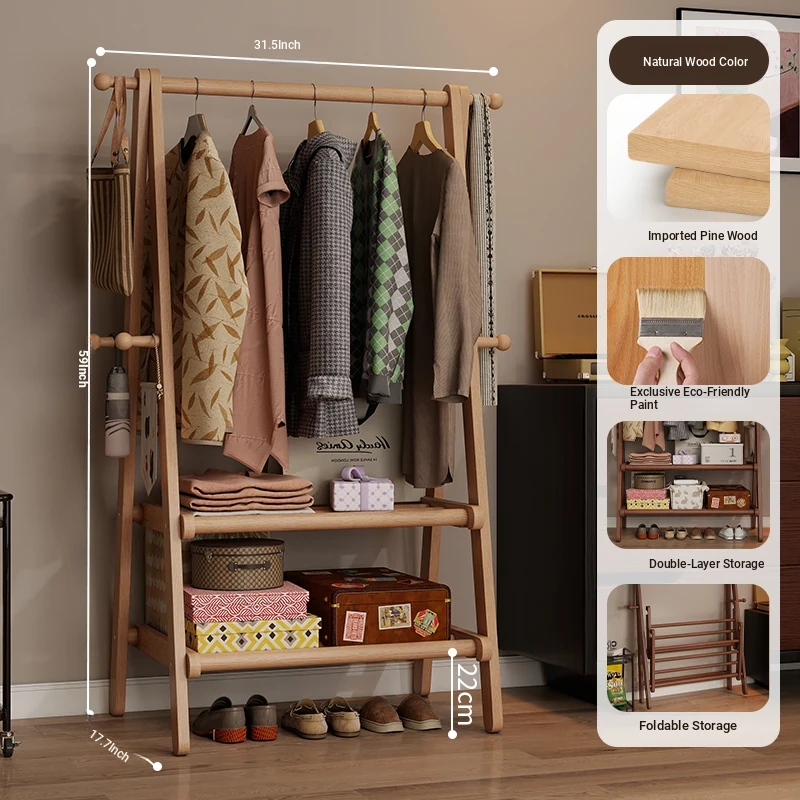 2025 New Solid Wood Coat Rack - Stylish, Foldable Floor Stand for Bedroom, Home Use, Luxury Clothes Hanger and Vertical Storage Solution