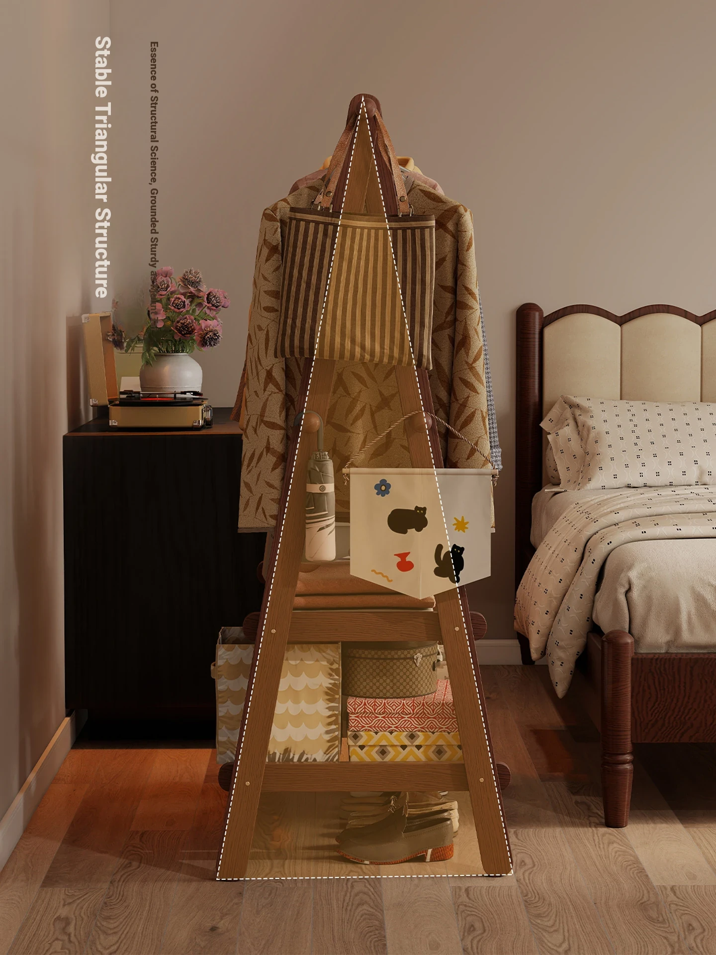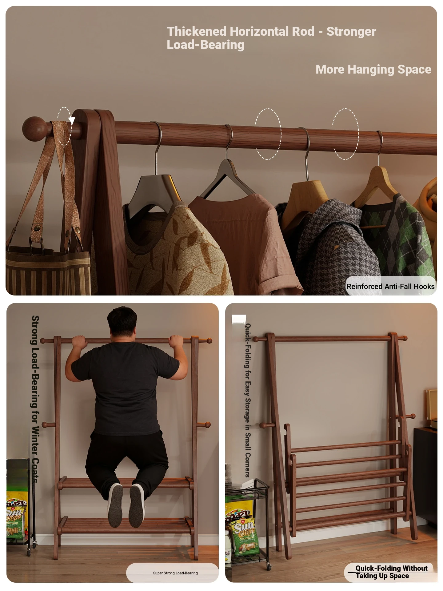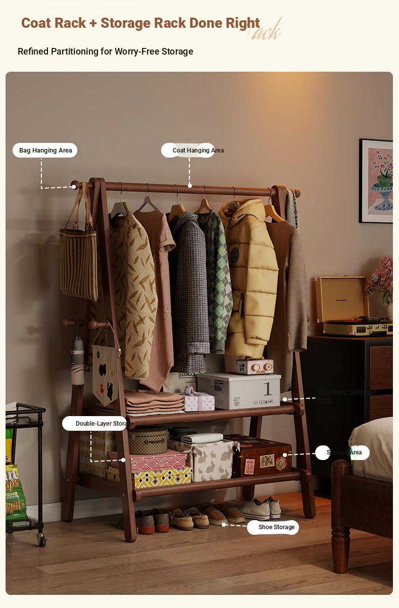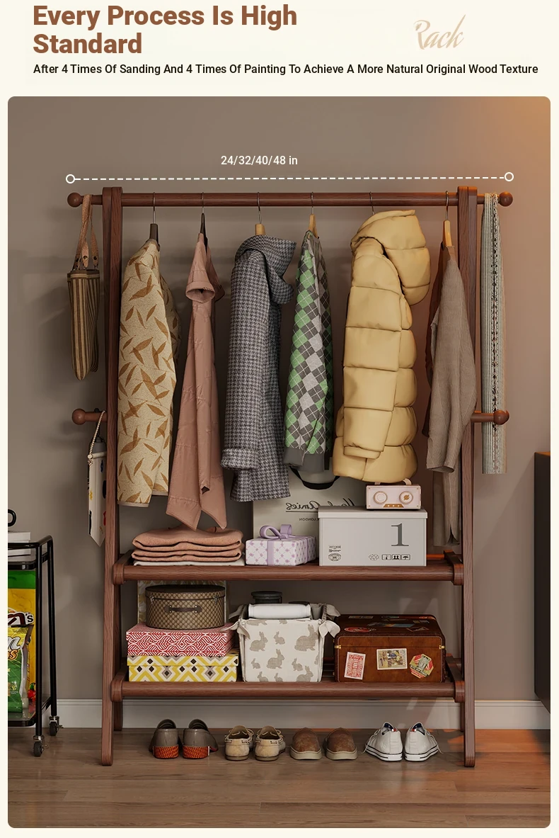 2025 New Solid Wood Coat Rack - Stylish, Foldable Floor Stand for Bedroom, Home Use, Luxury Clothes Hanger and Vertical Storage Solution