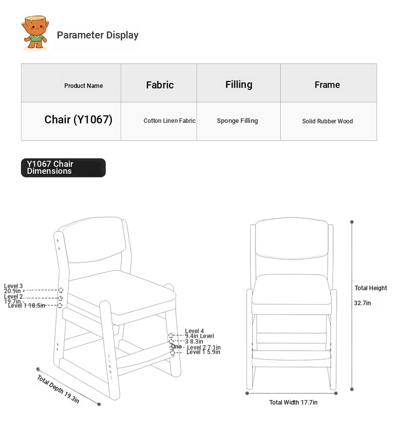 Y1068-Walnut Color Frame + Gray Cotton and Linen