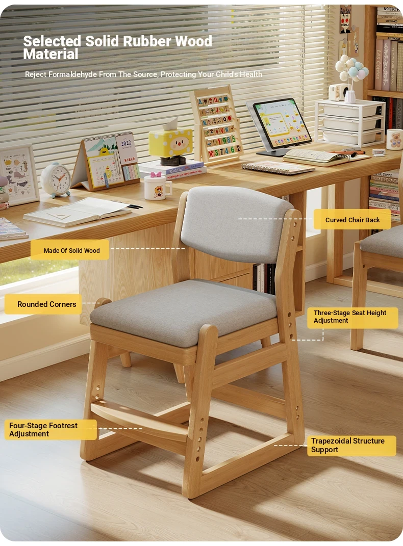 Adjustable Ergonomic Study Chair for Kids - Posture Correcting Desk Chair for Primary School Students, Ideal for Home Writing and Learning Activities